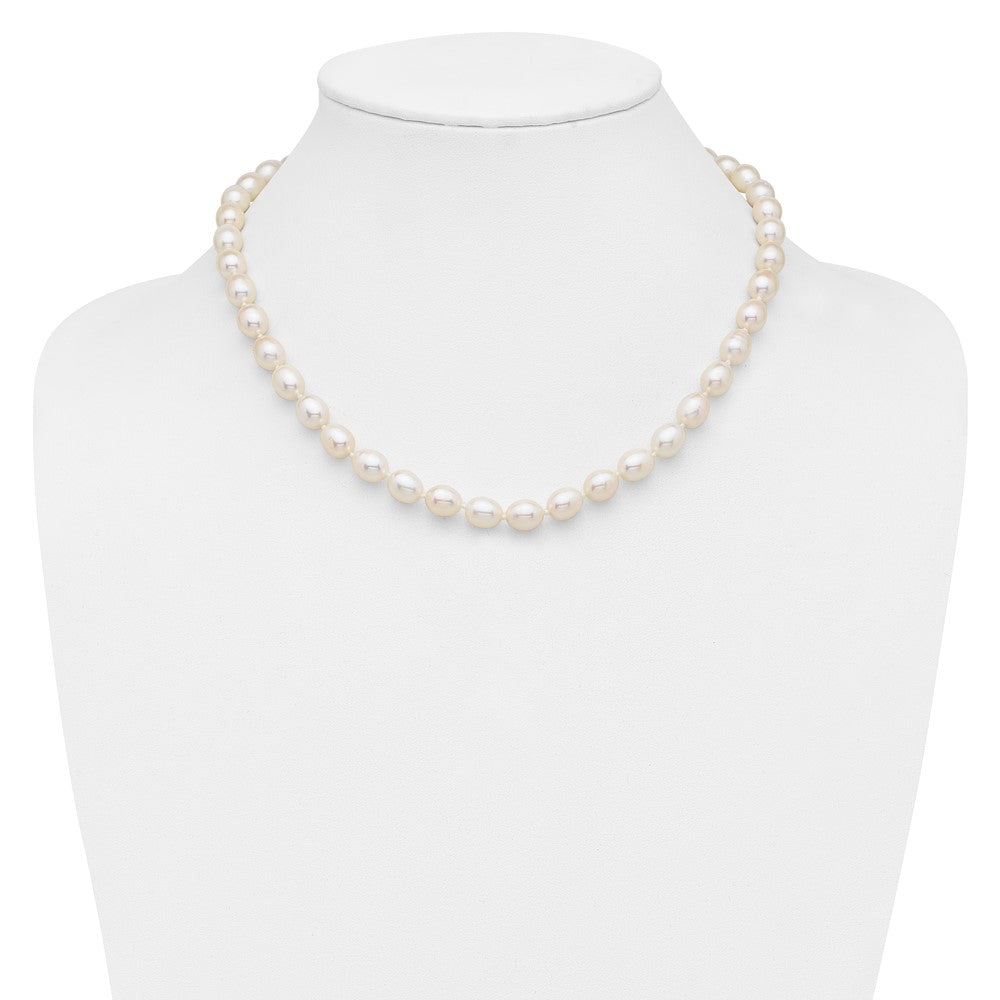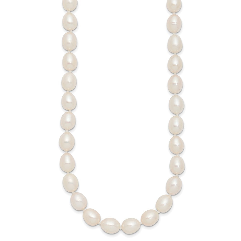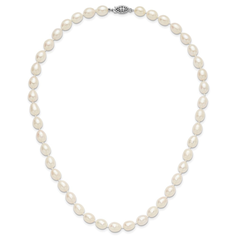 Sterling Silver Rhodium-plated 7-8mm White Rice Freshwater Cultured Pearl18 inch Necklace