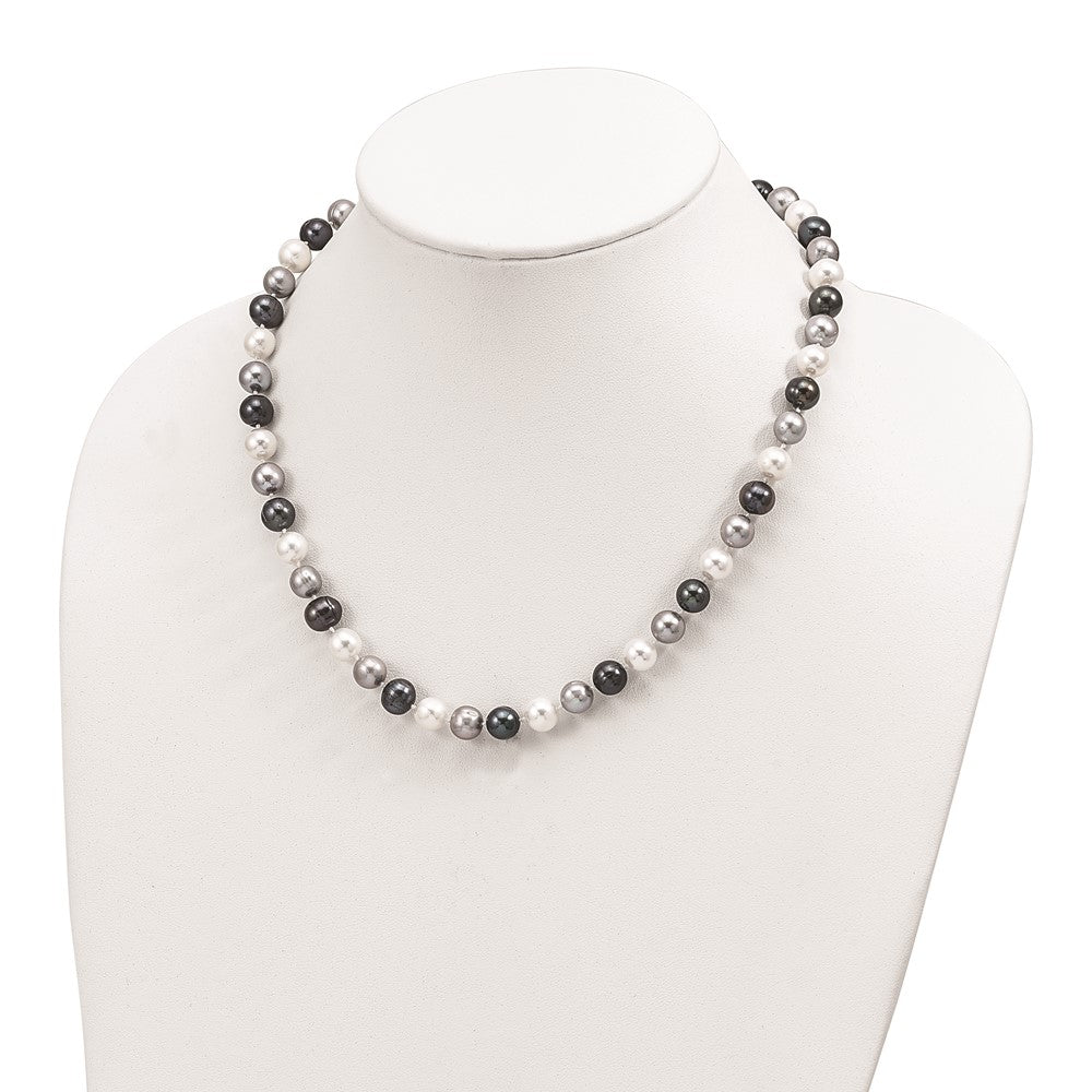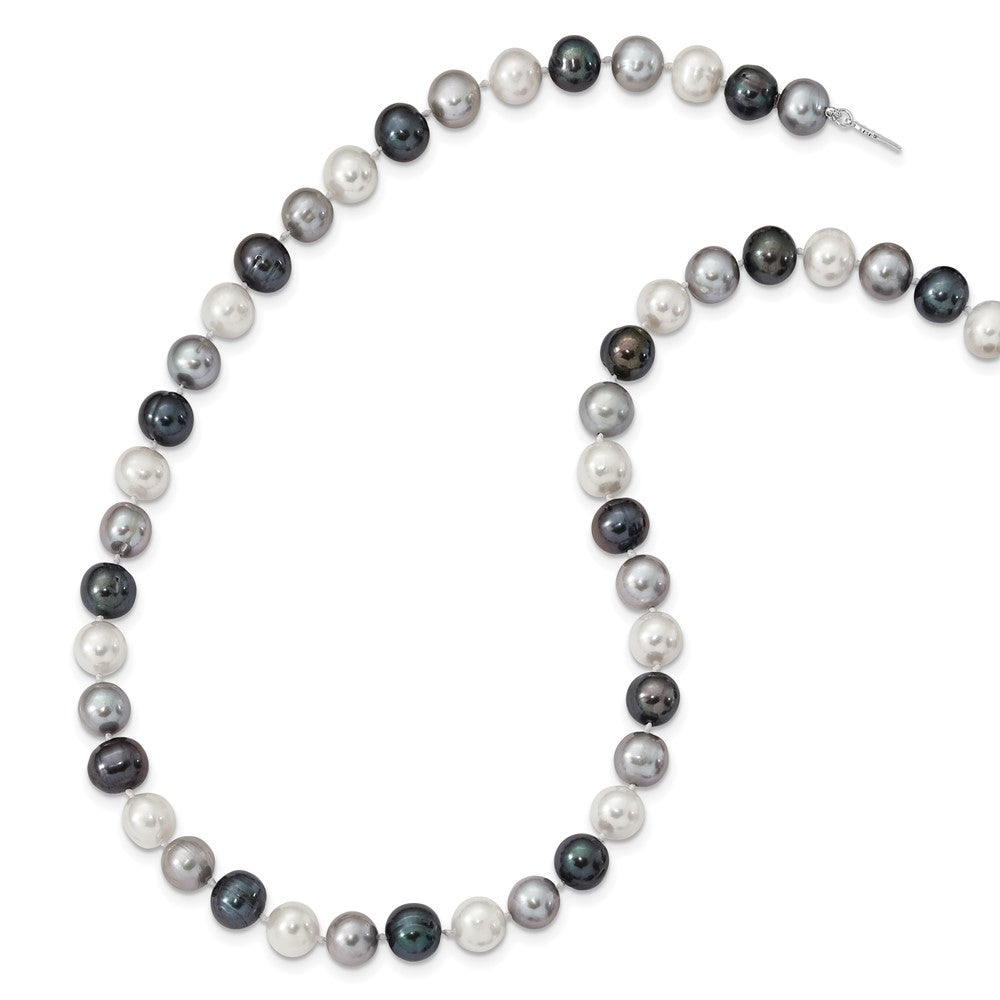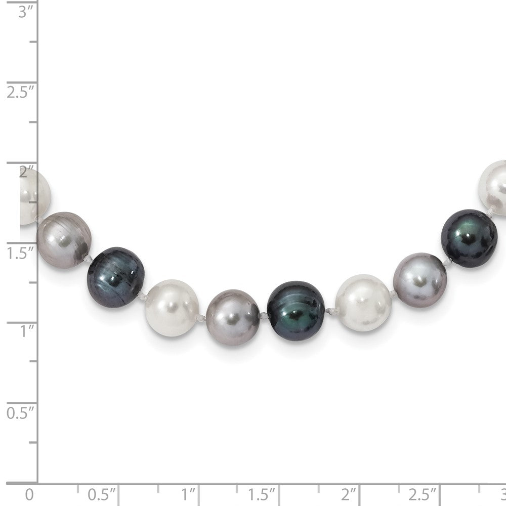 Sterling Silver Rhodium-plated 8-9mm Black, Green and White Semi-Round Freshwater Cultured Pearl 18 inch Necklace