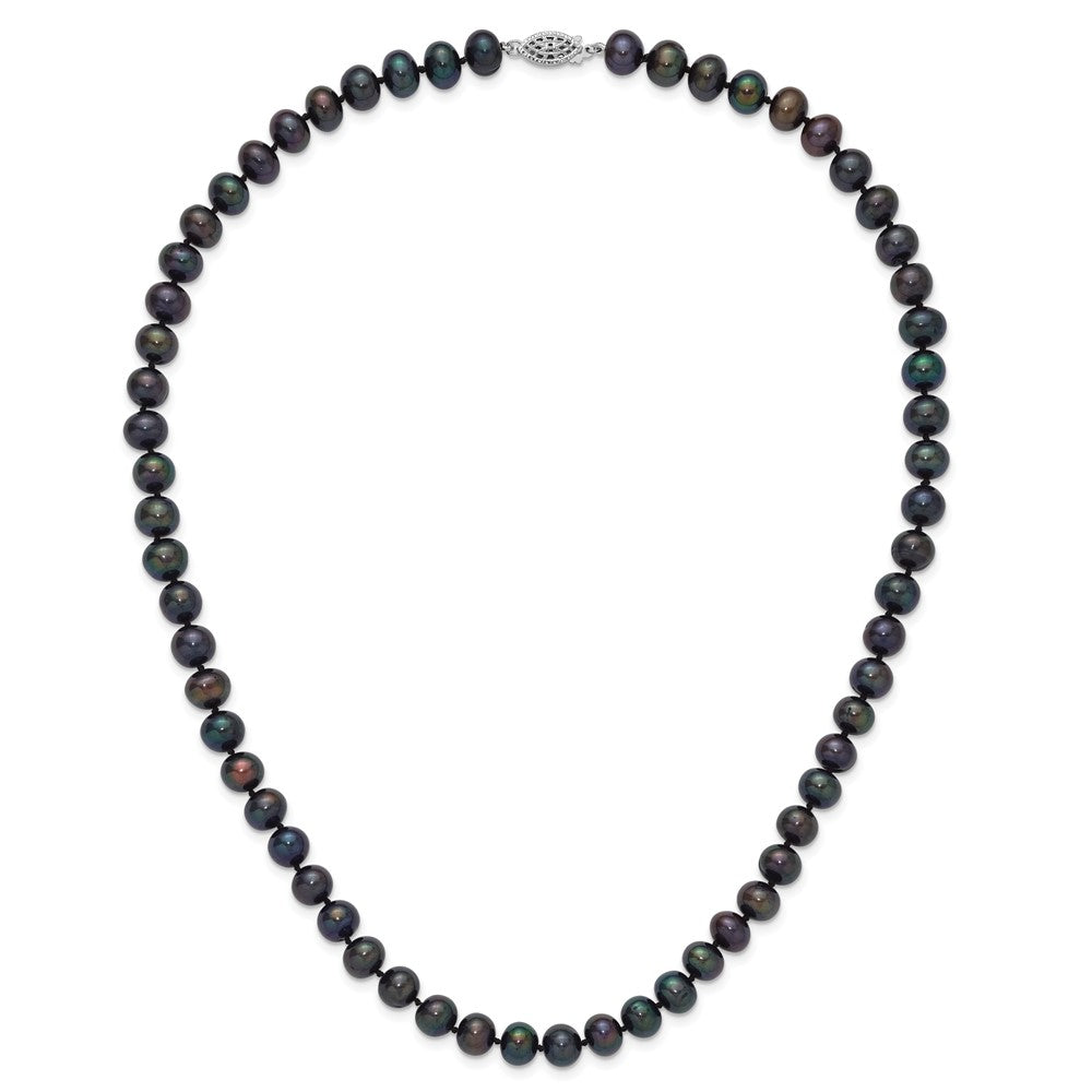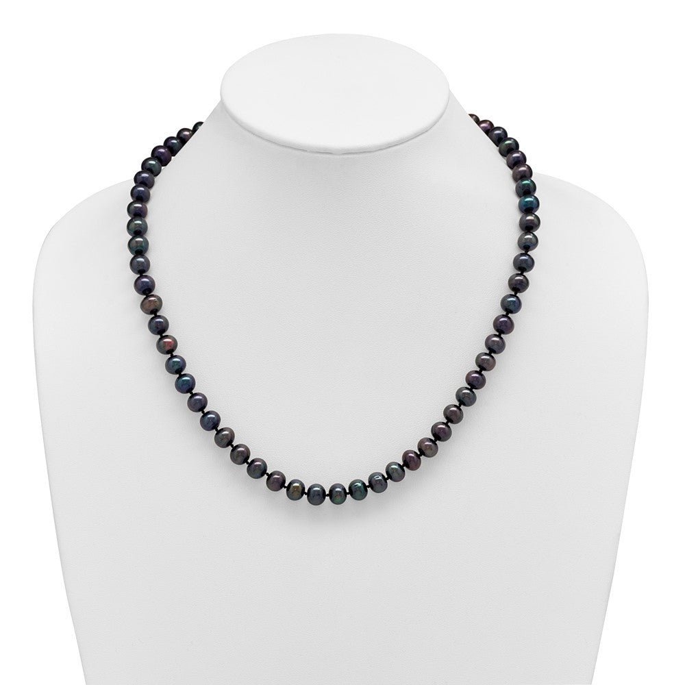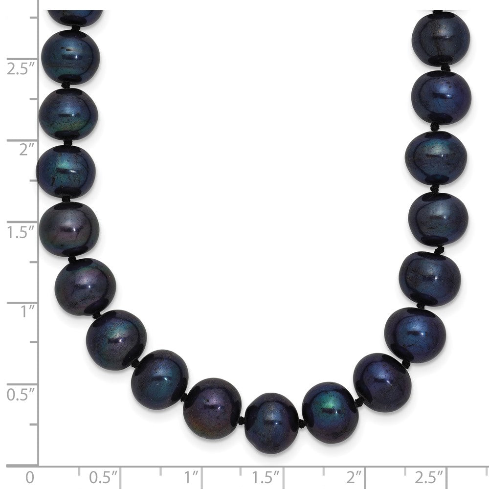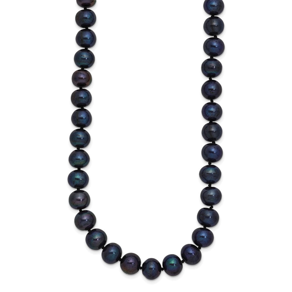 Sterling Silver Rhodium-plated 8-9mm Black Near-Round Freshwater Cultured Pearl 16 inch Necklace