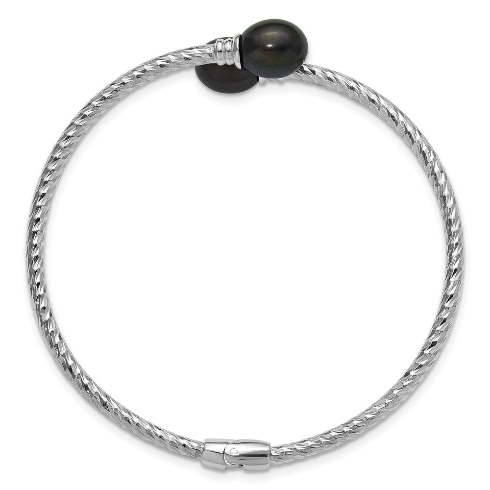 Sterling Silver Rhodium-plated 8- Black Rice Freshwater Cultured Pearl Hinged Bangle