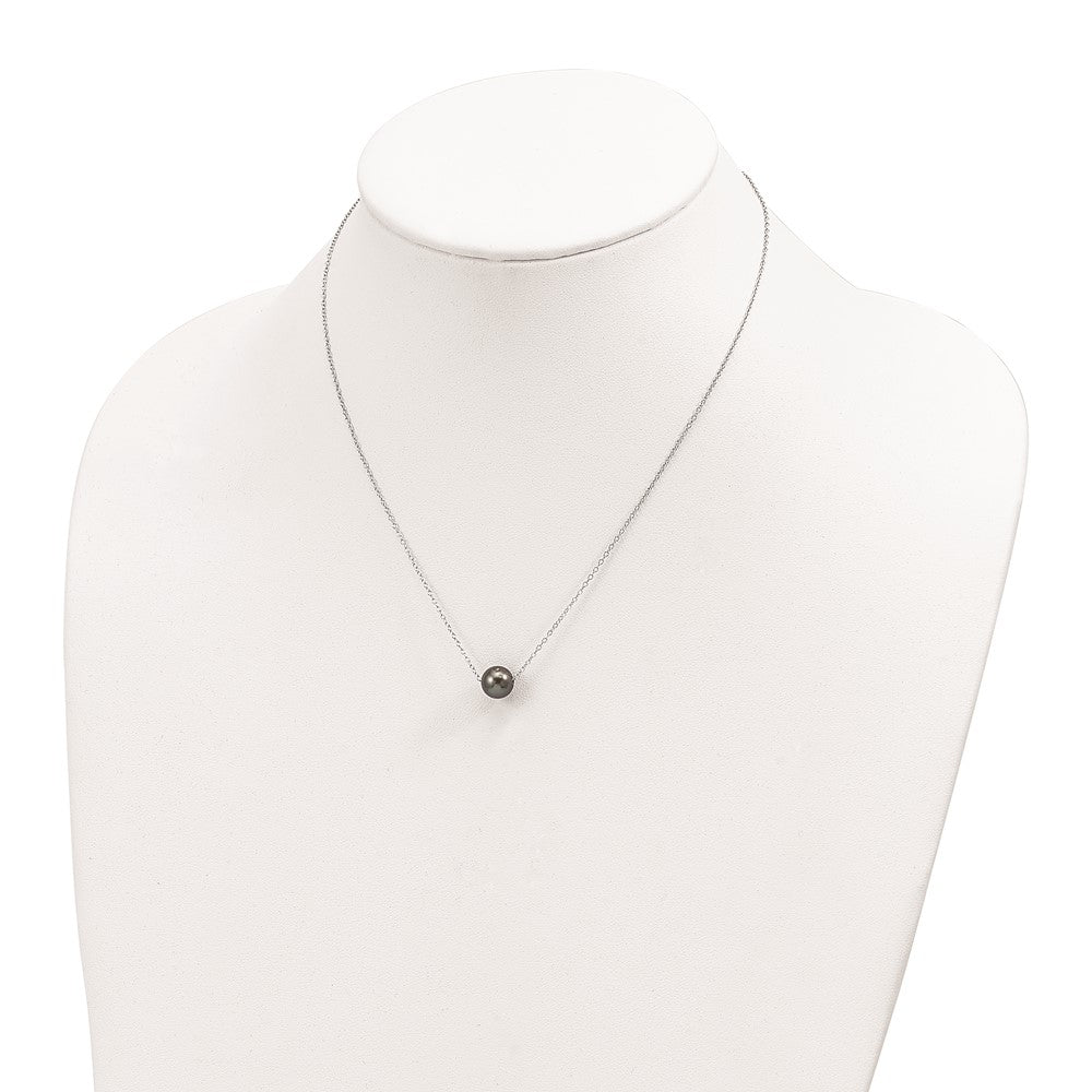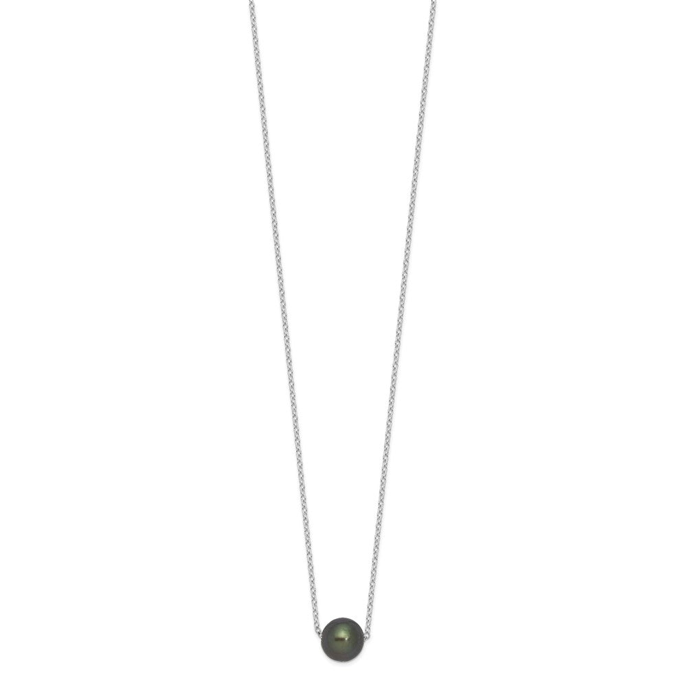 Sterling Silver Rhodium-plated 8-9mm Black Semi-Round Tahitian Saltwater Cultured Pearl 17 inch Necklace