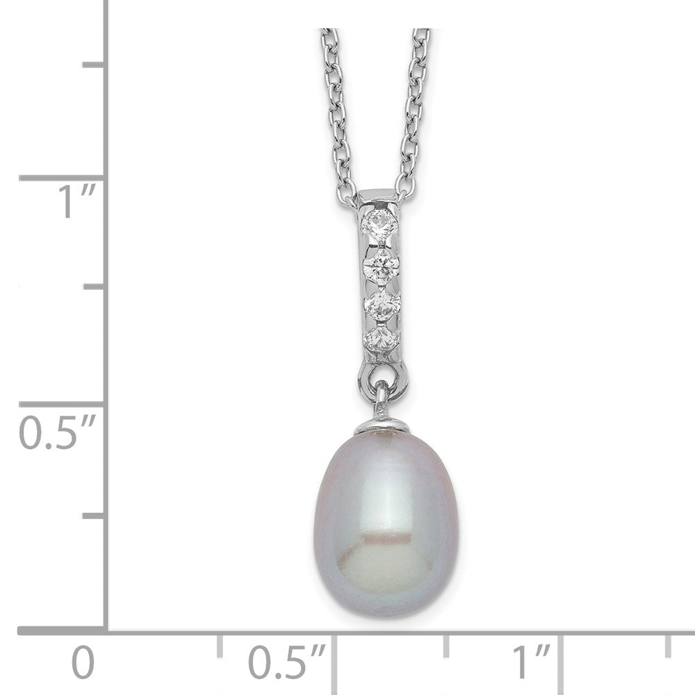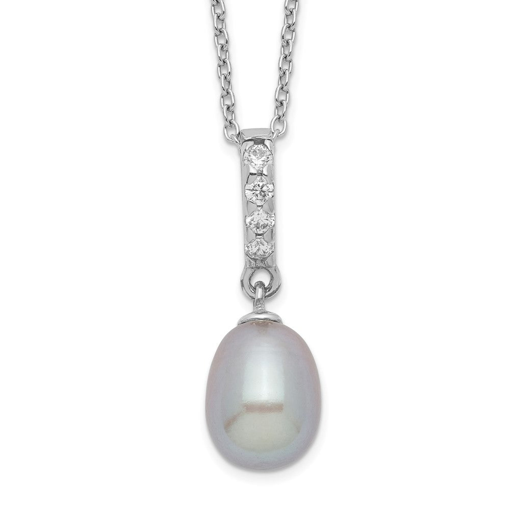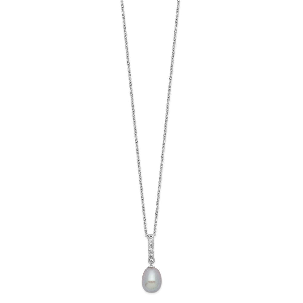 Sterling Silver Rhodium-plated 8- Grey Teardrop Freshwater Cultured Pearl and CZ Necklace