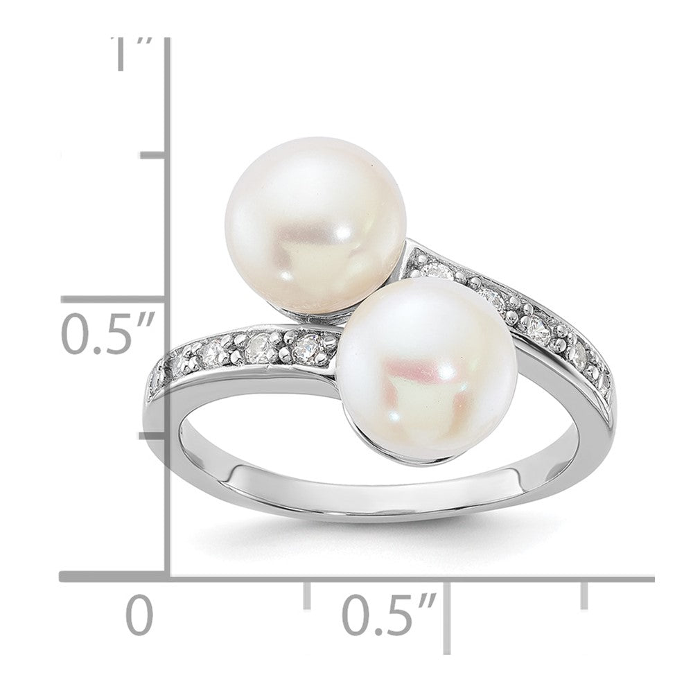 Sterling Silver Rhodium-plated 8- White Button Freshwater Cultured Pearl and CZ Bypass Ring