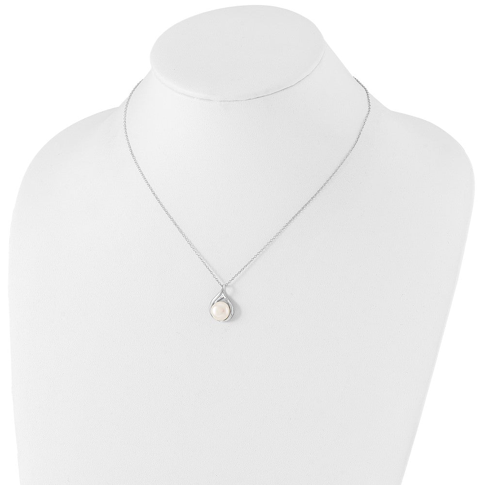 Sterling Silver Rhodium-plated 9- White Button Freshwater Cultured Pearl Necklace