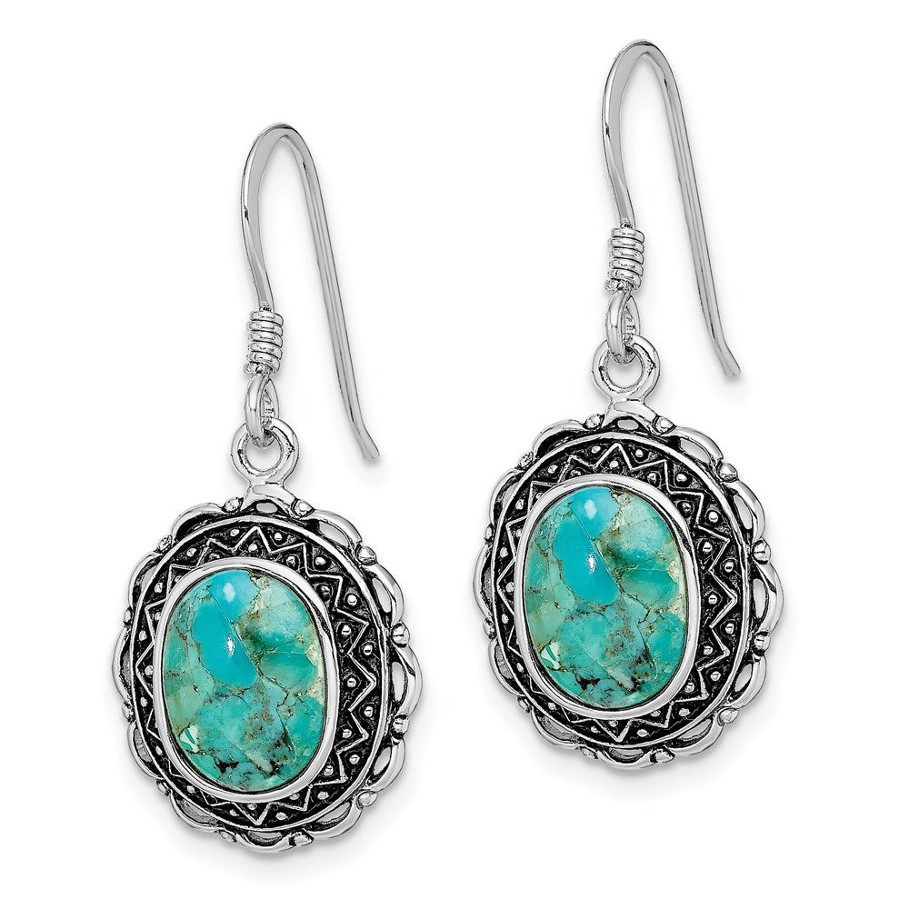 Sterling Silver Rhodium-plated Antiqued w/Recon. Turquoise Earrings