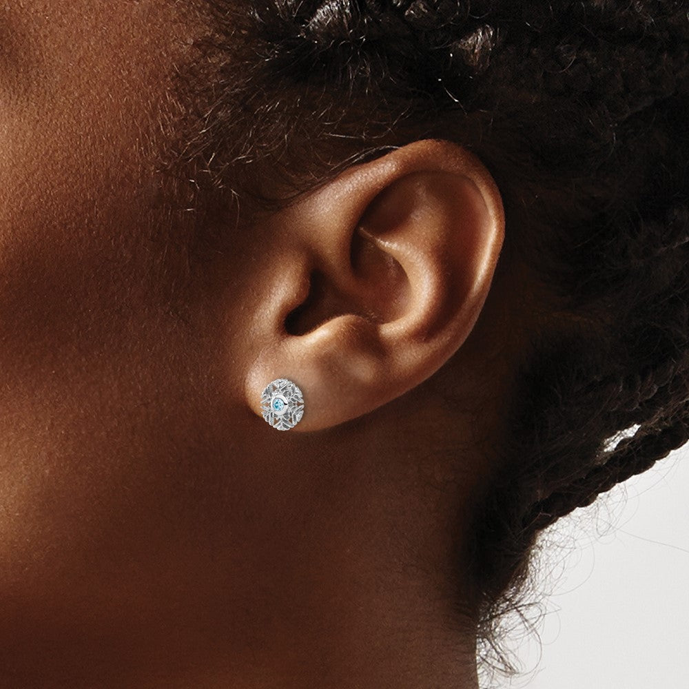 Sterling Silver Rhodium-plated Aqua CZ Snowflake Post Earrings