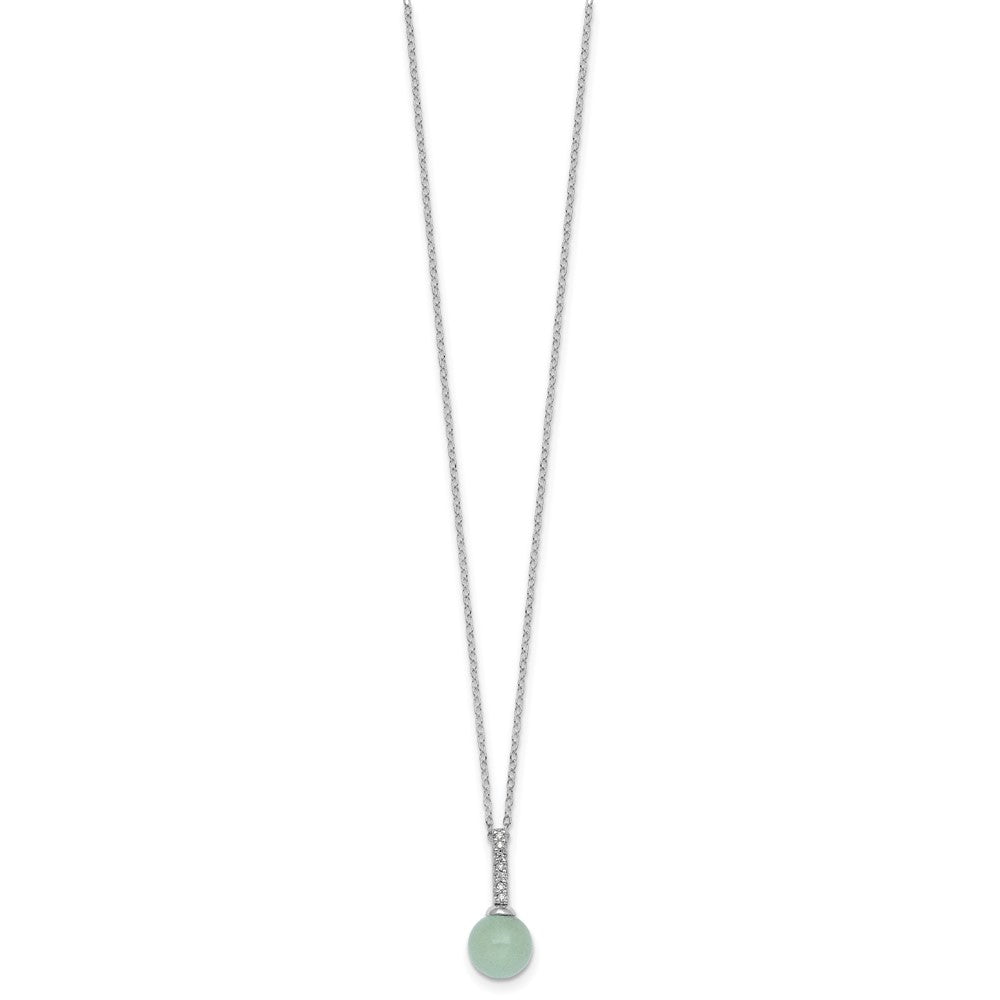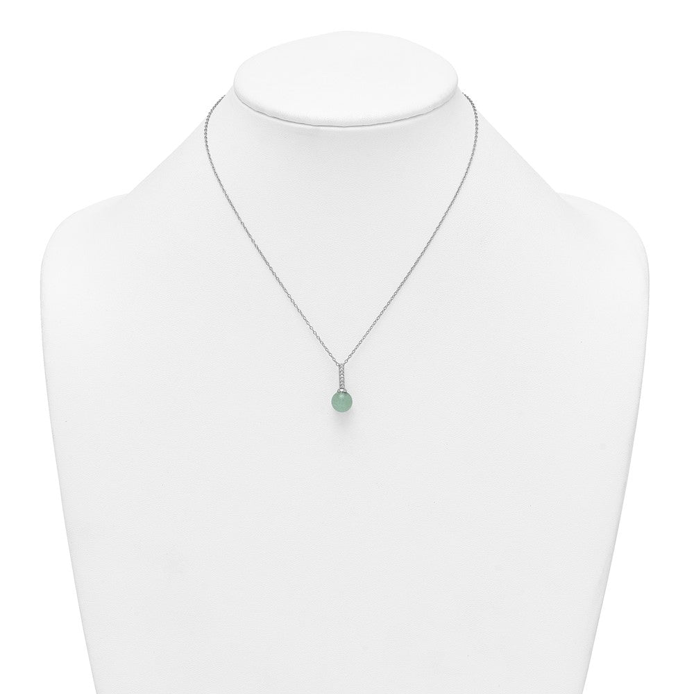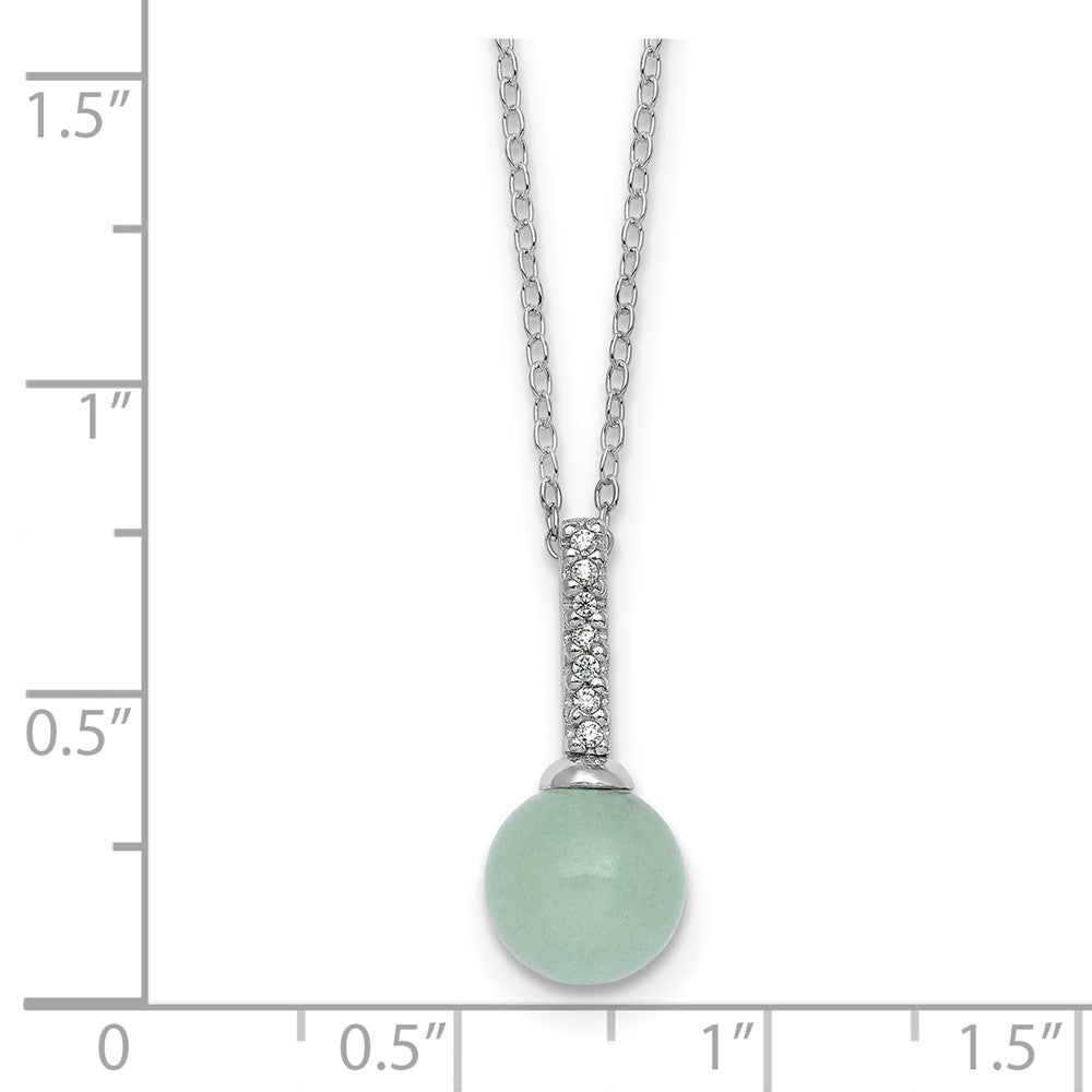 Sterling Silver Rhodium-plated Aventurine and CZ with Extender Necklace