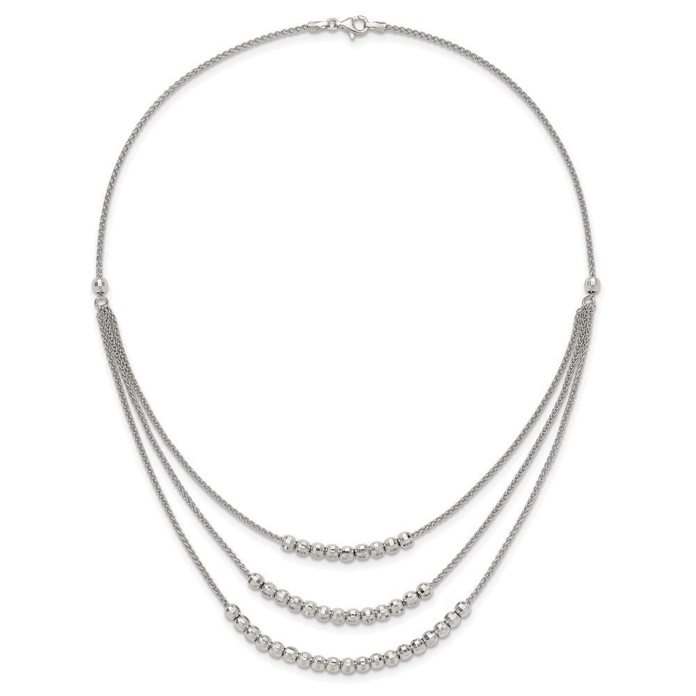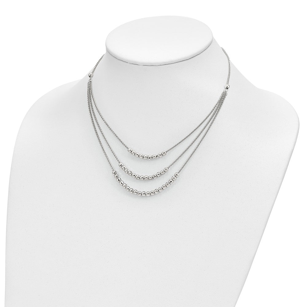 Sterling Silver Rhodium-plated Beaded Multi Layer Necklace