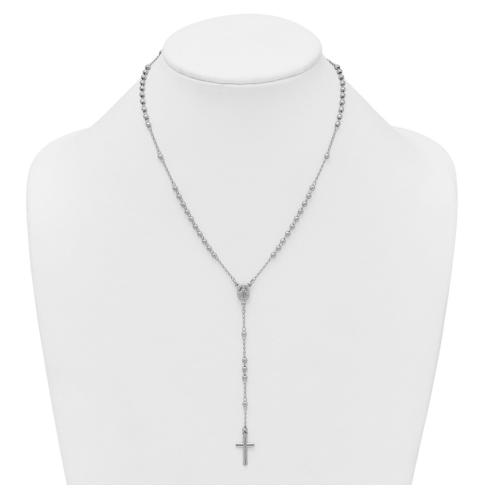 Sterling Silver Rhodium-plated Beaded with 1. extender Rosary Necklace