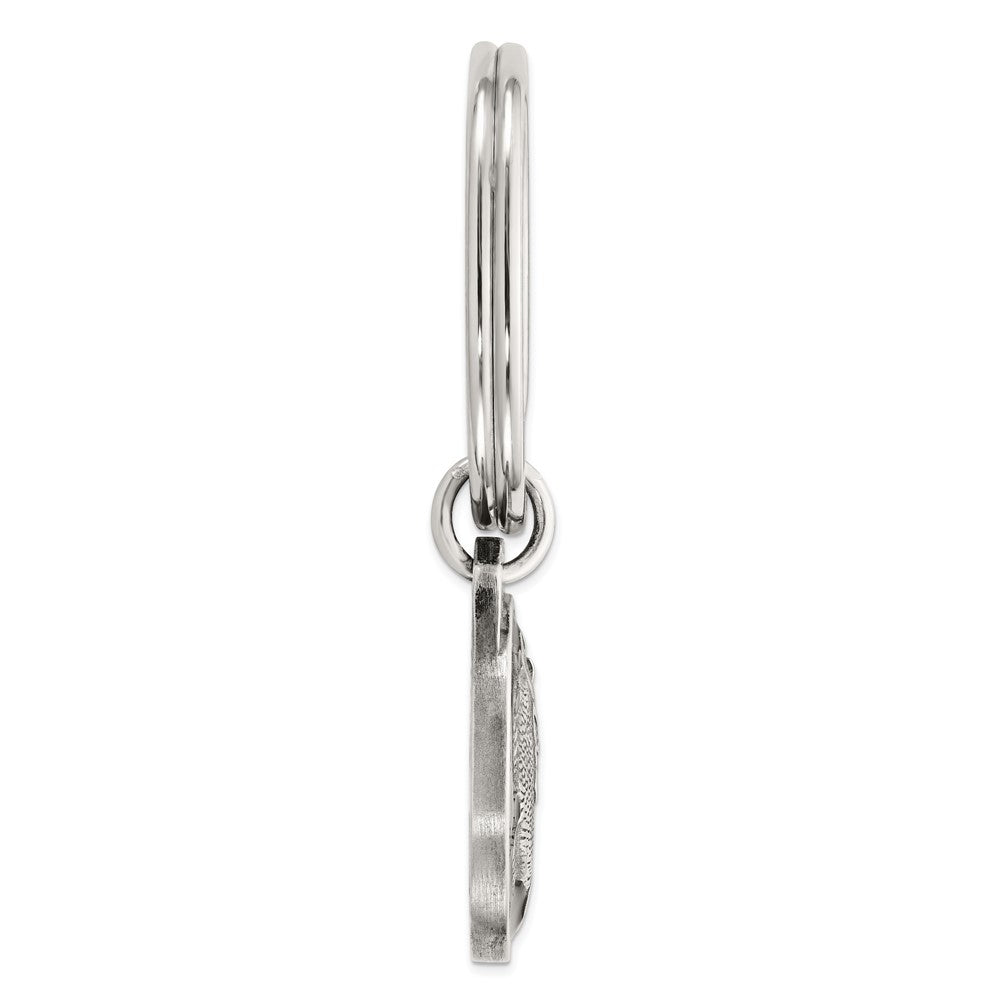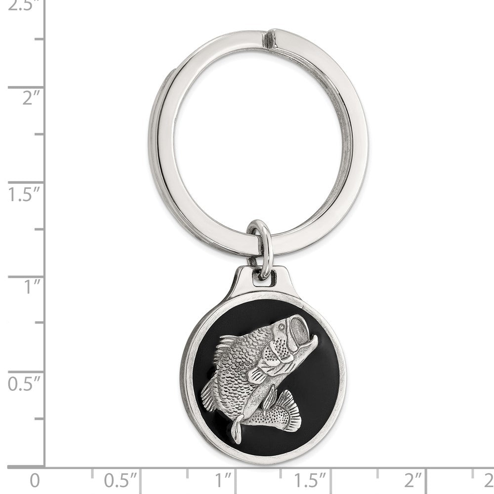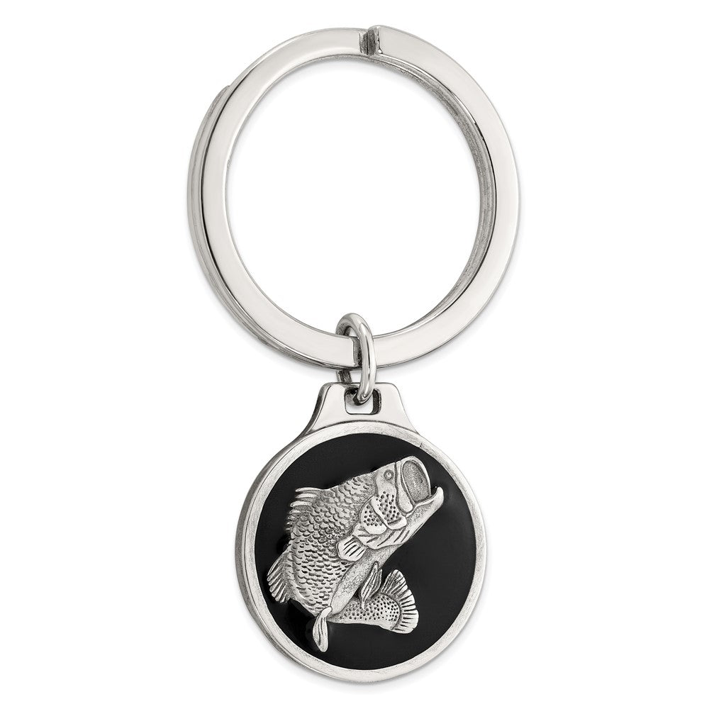 Sterling Silver Rhodium-plated Black Epoxy Bass Fish Keychain
