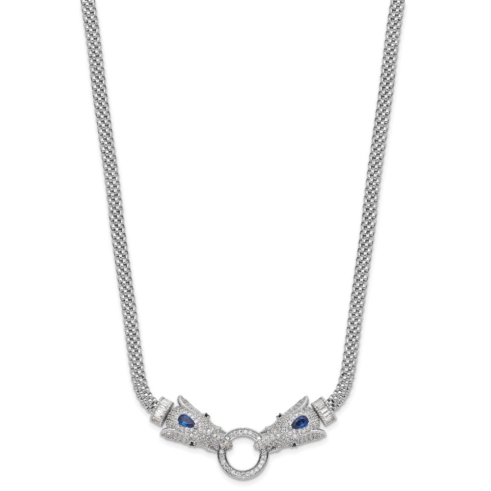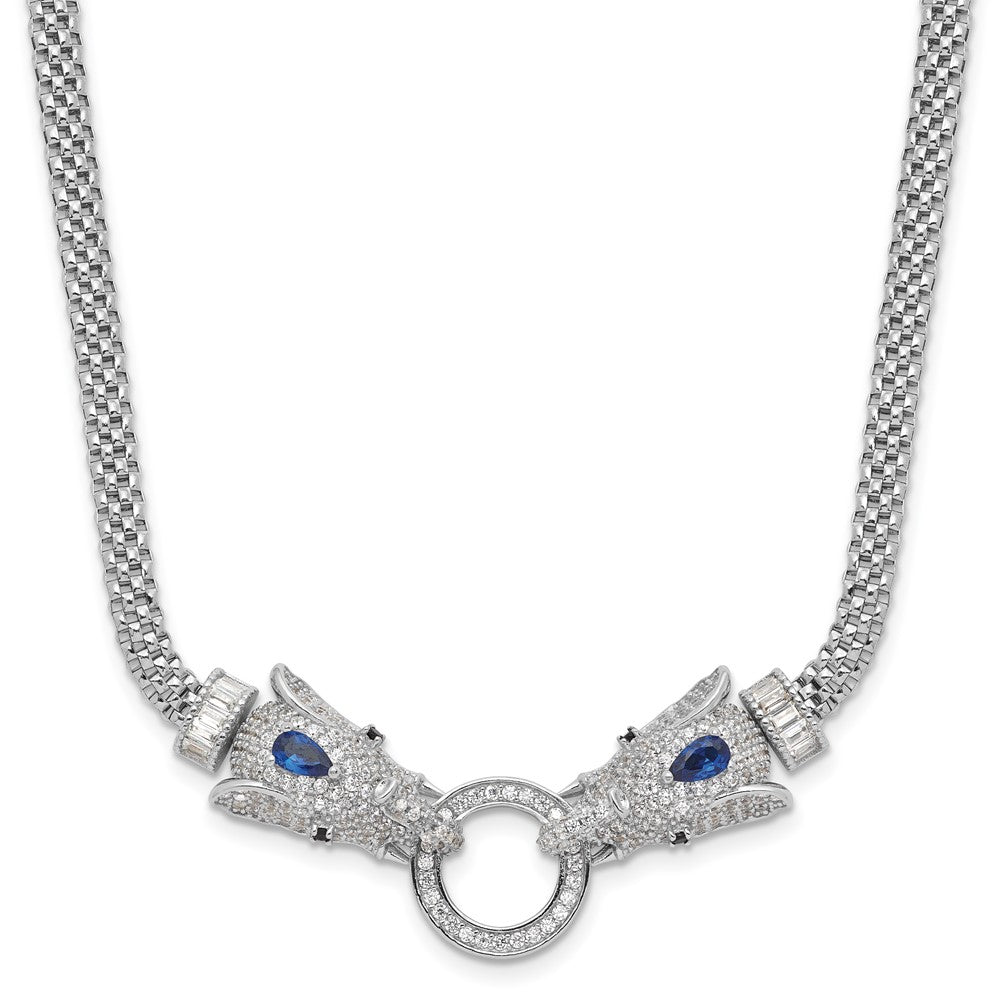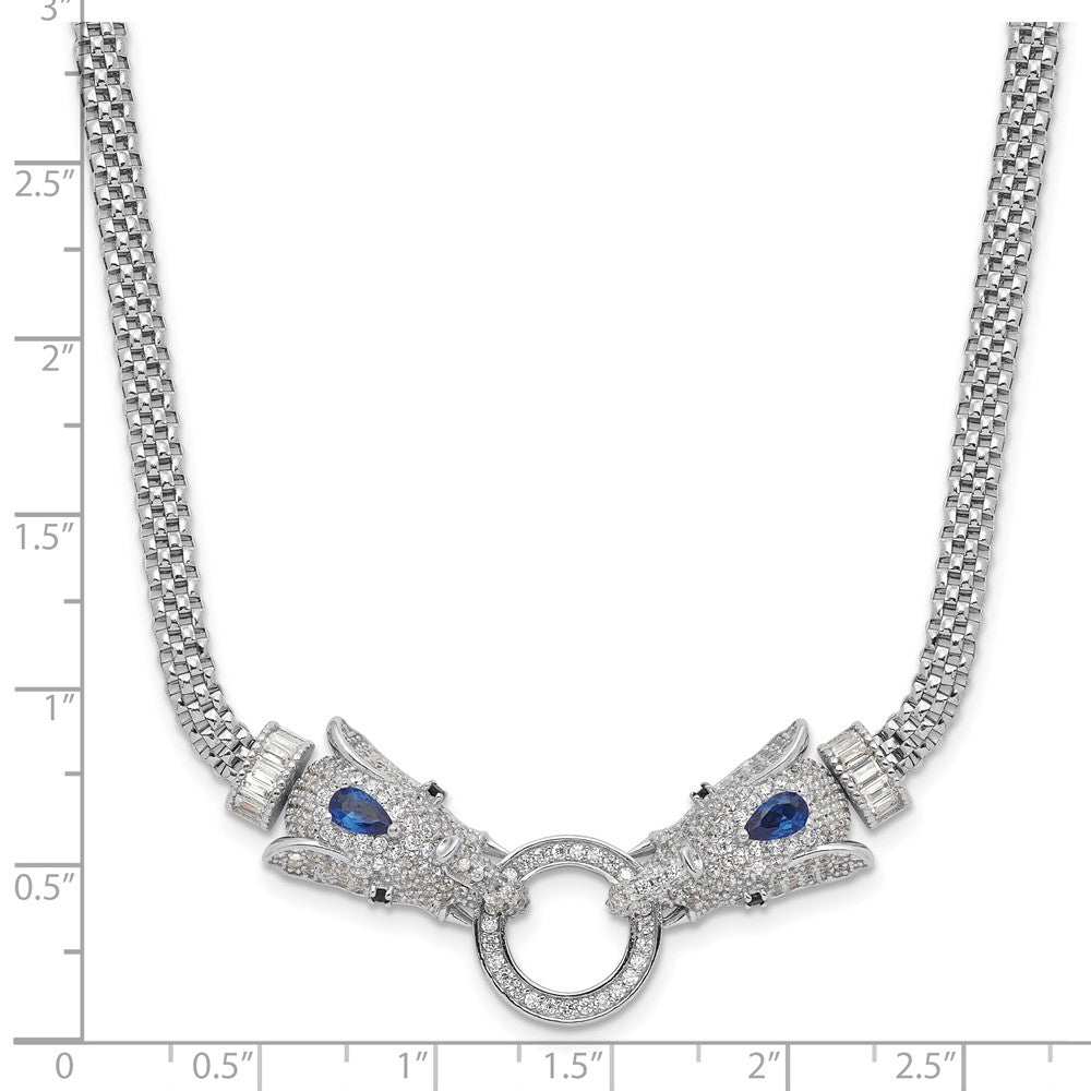 Sterling Silver Rhodium-plated Blue and Clear CZ Elephant Head Necklace
