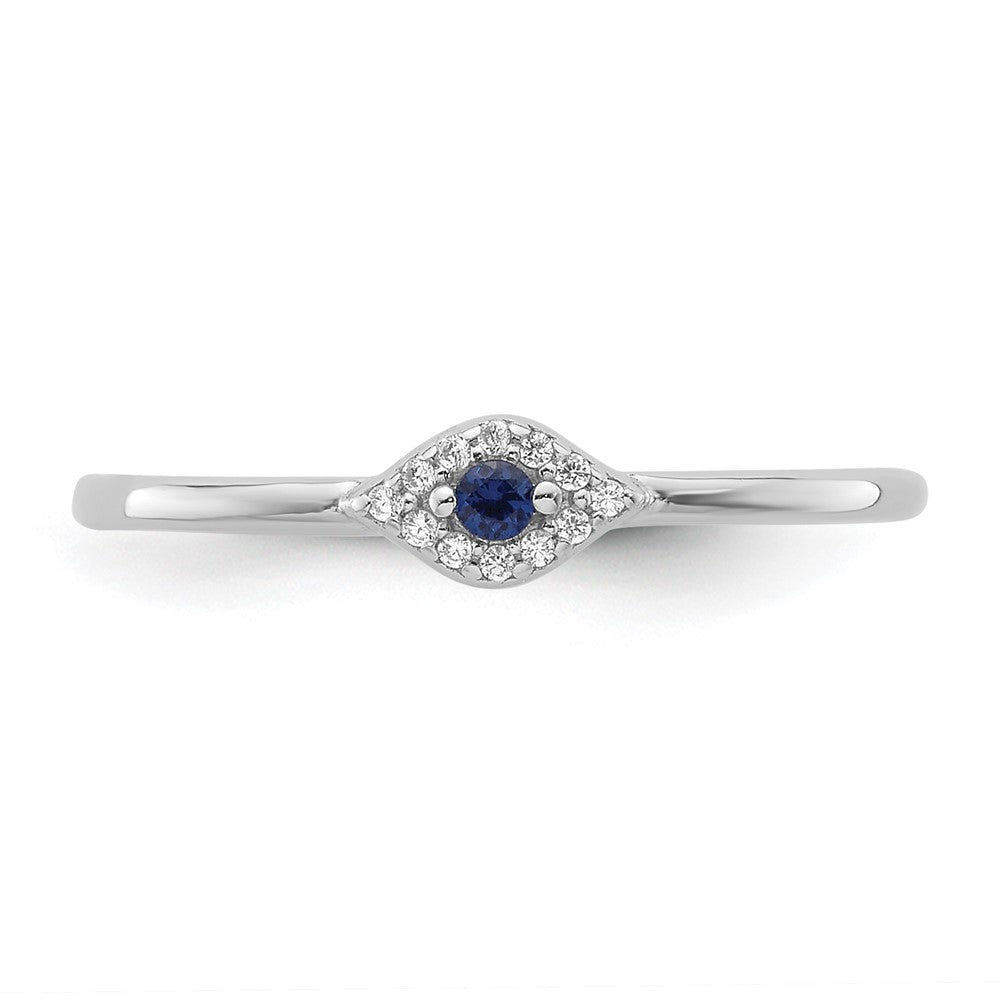 Sterling Silver Rhodium-plated Blue and Clear CZ Evil Eye Ring