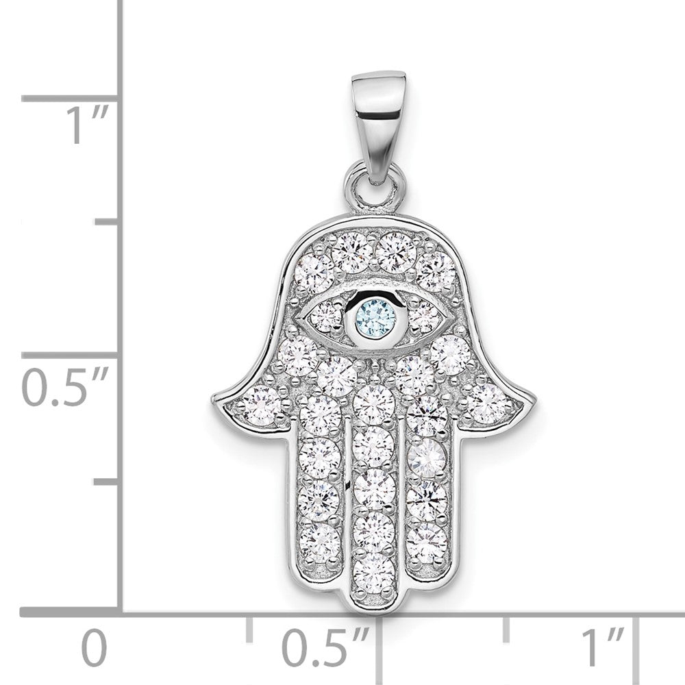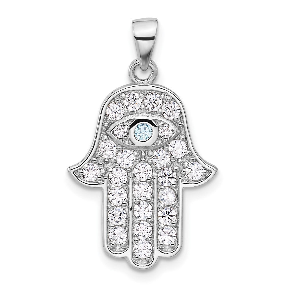 Sterling Silver Rhodium-plated Blue and White CZ Hamsa Eye Pendant