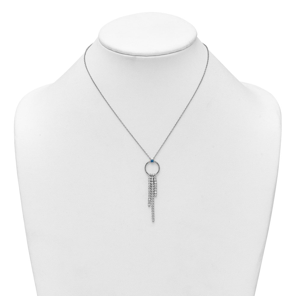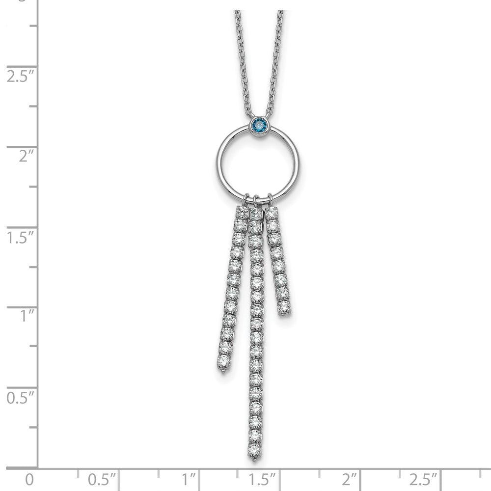 Sterling Silver Rhodium-plated Blue and White CZ with extender Circle with 3 Drops Necklace
