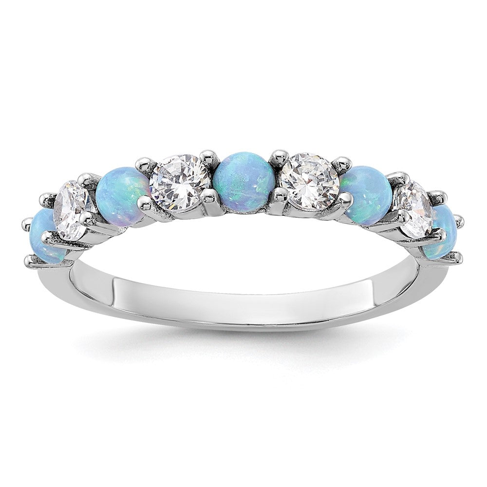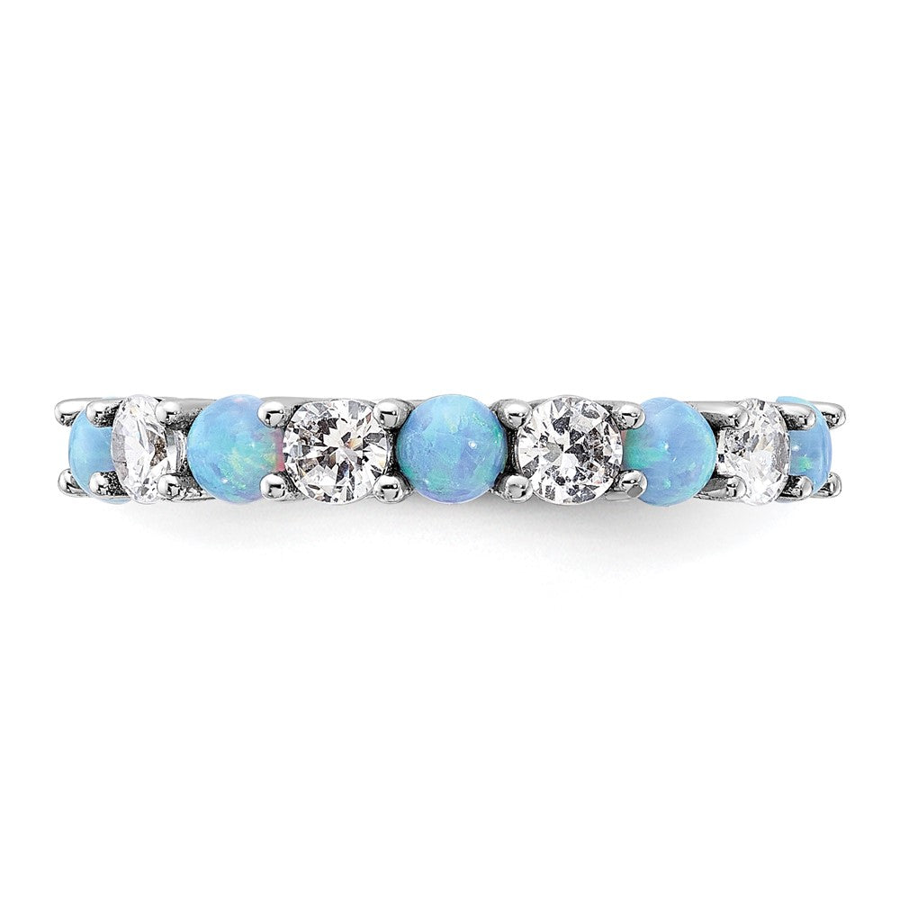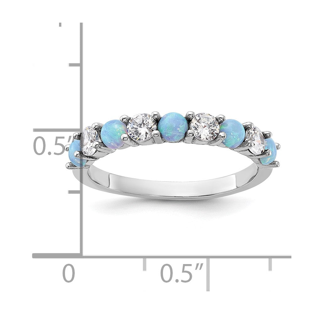 Sterling Silver Rhodium-plated Blue Created Opal and CZ Ring