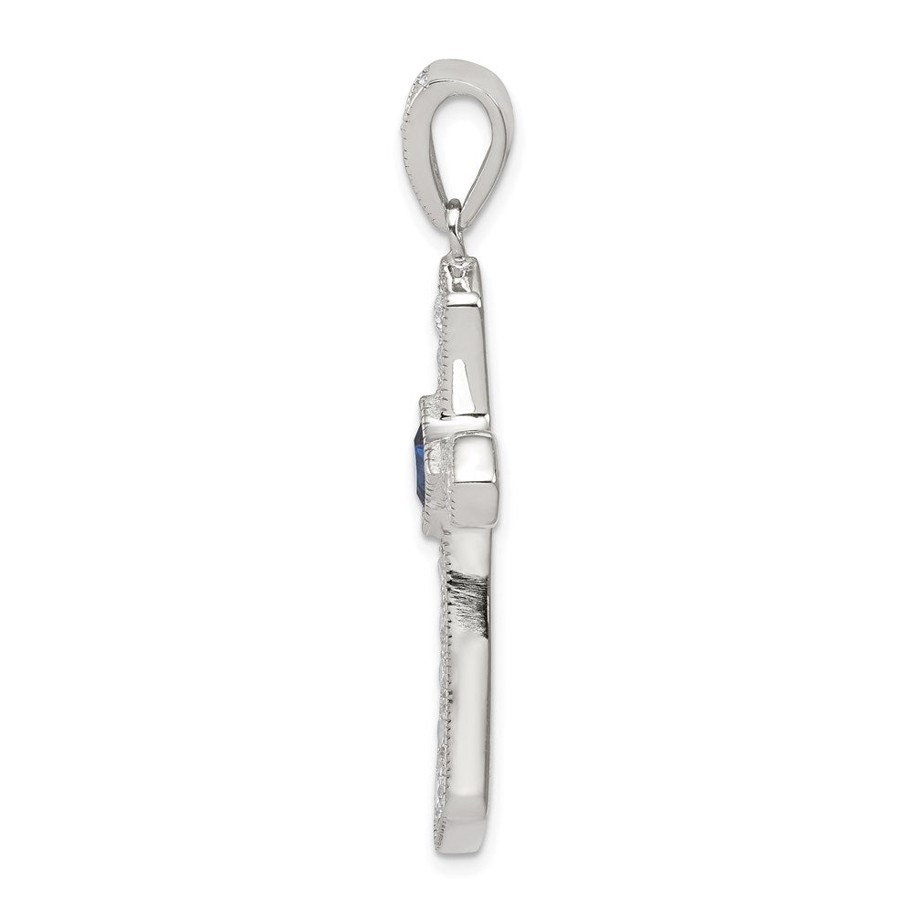 Sterling Silver Rhodium-plated Blue CZ Center & CZ Passion Cross Pendant
