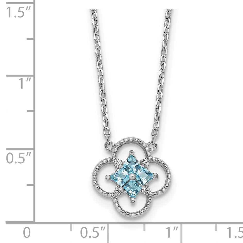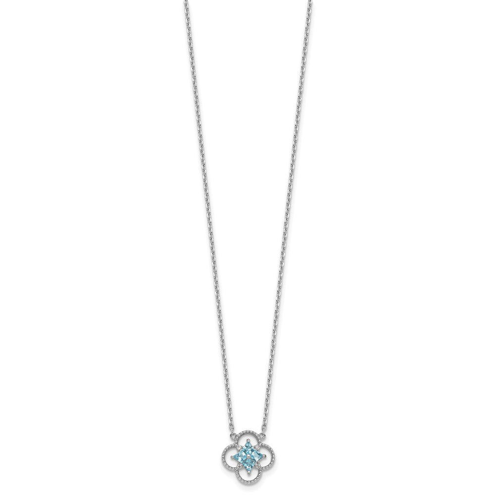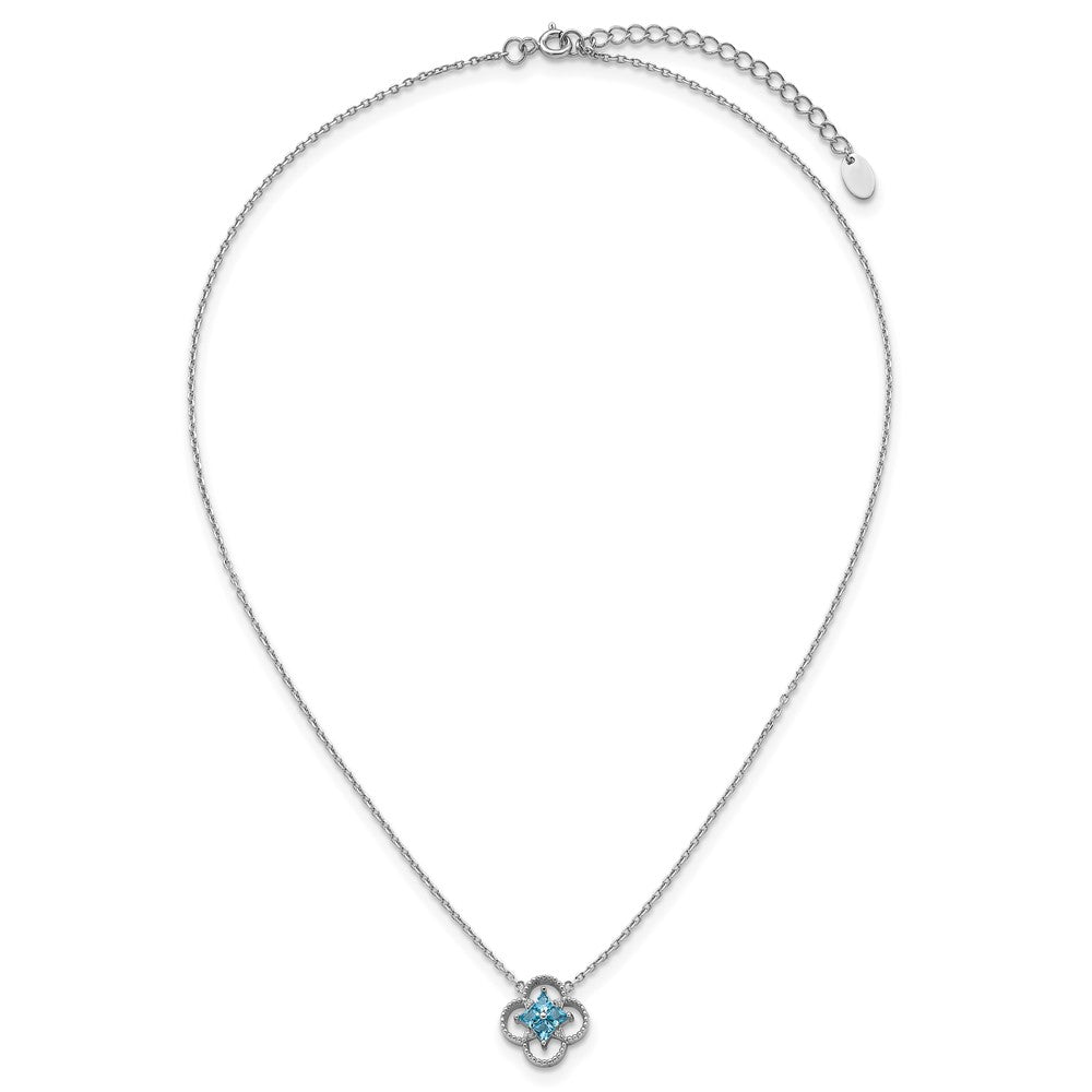 Sterling Silver Rhodium-plated Blue CZ Textured Clover Shape with 1. Extension Necklace