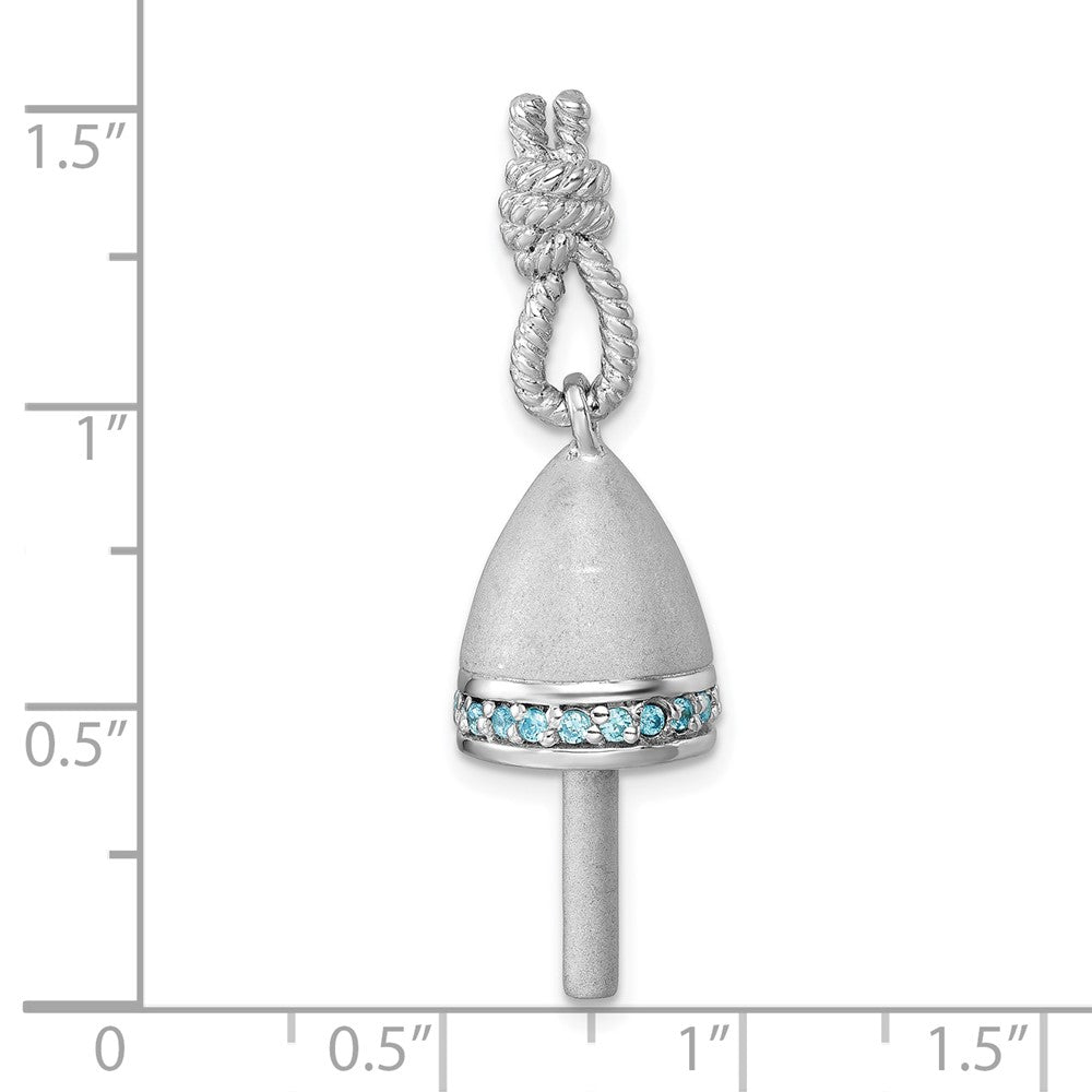 Sterling Silver Rhodium-Plated Brushed Blue CZ Buoy Pendant