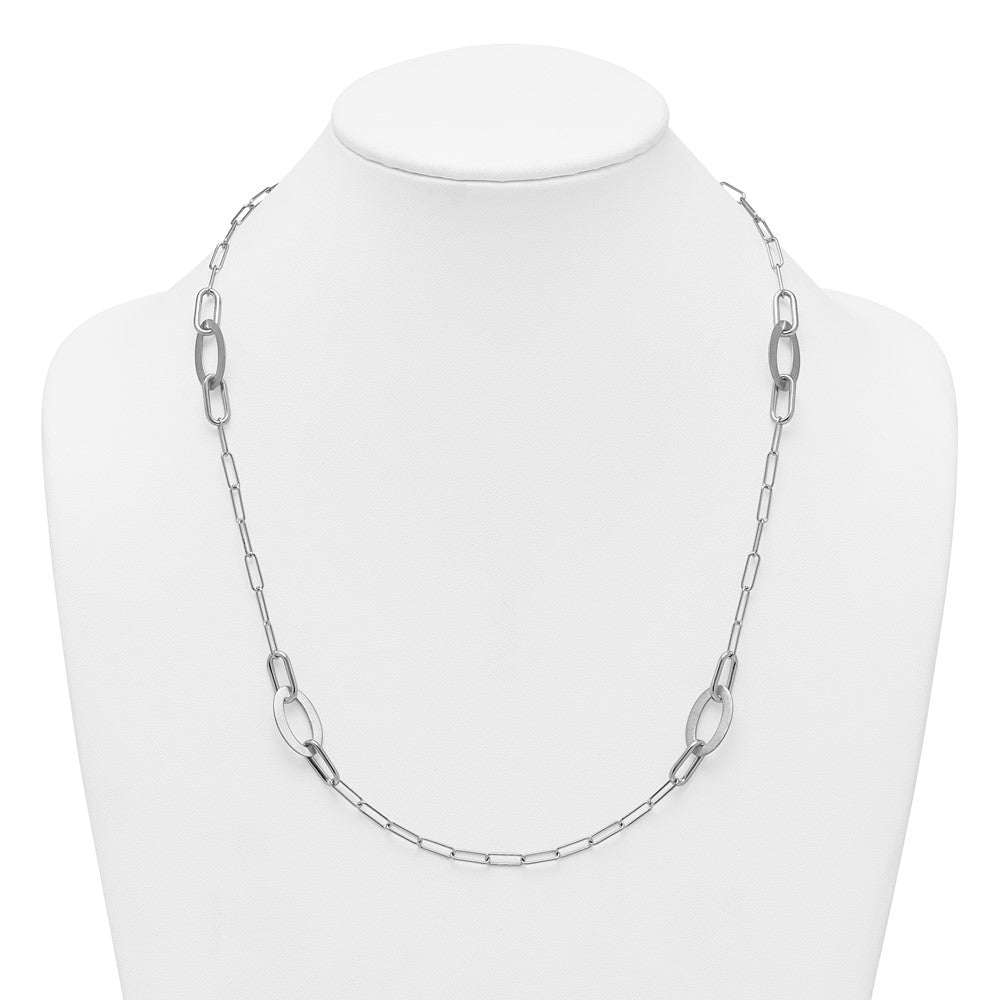 Sterling Silver Rhodium-plated Brushed Fancy Paperclip and Oval Link Necklace