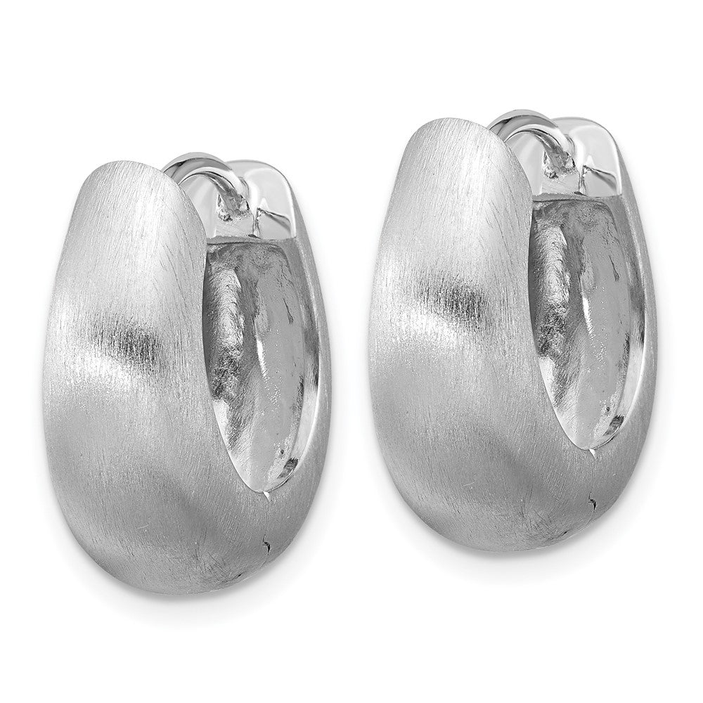 Sterling Silver Rhodium-plated Brushed Tapered Hinged Hoop Earrings