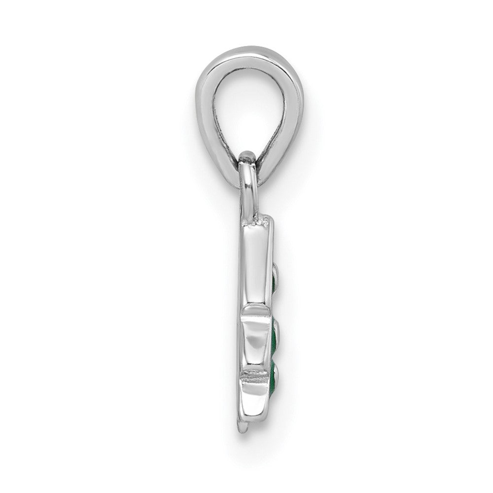 Sterling Silver Rhodium-plated Children's Green Enamel Christmas Tree with Hearts Pendant