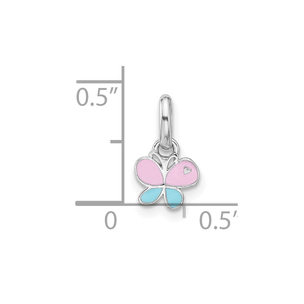Sterling Silver Rhodium-plated Children's Small Enamel Butterfly Pendant