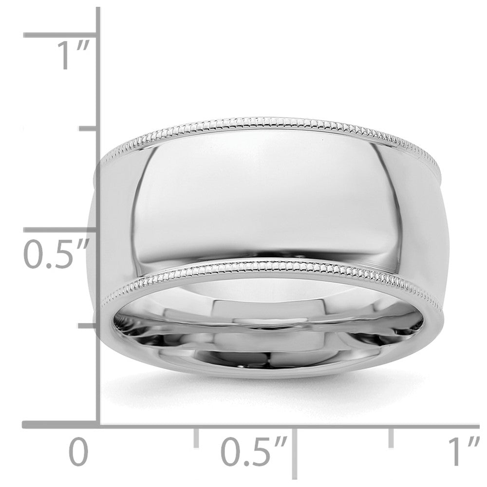 Sterling Silver Rhodium-plated Comfort Fit Milgrain Size 12 Band