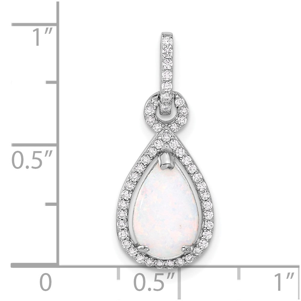 Sterling Silver Rhodium-plated Created Opal and CZ Teardrop Pendant