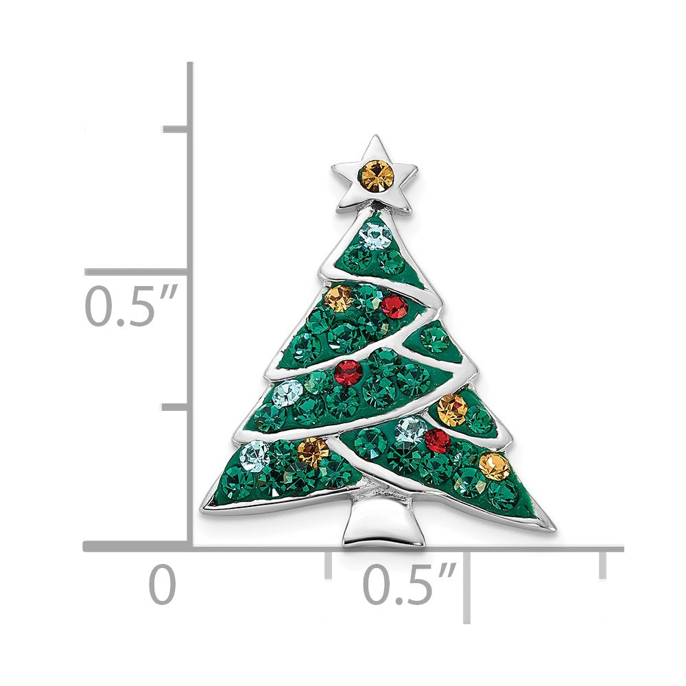 Sterling Silver Rhodium-plated Crystal Christmas Tree Pin