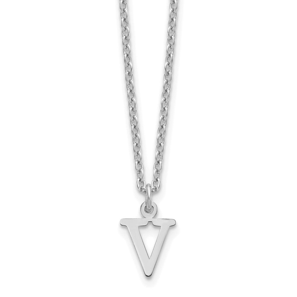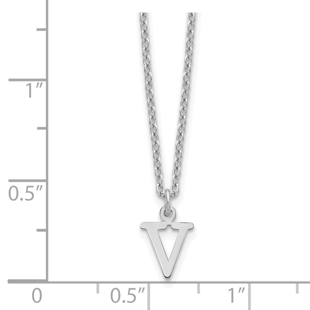 Sterling Silver Rhodium-plated Cutout Letter V Initial Necklace