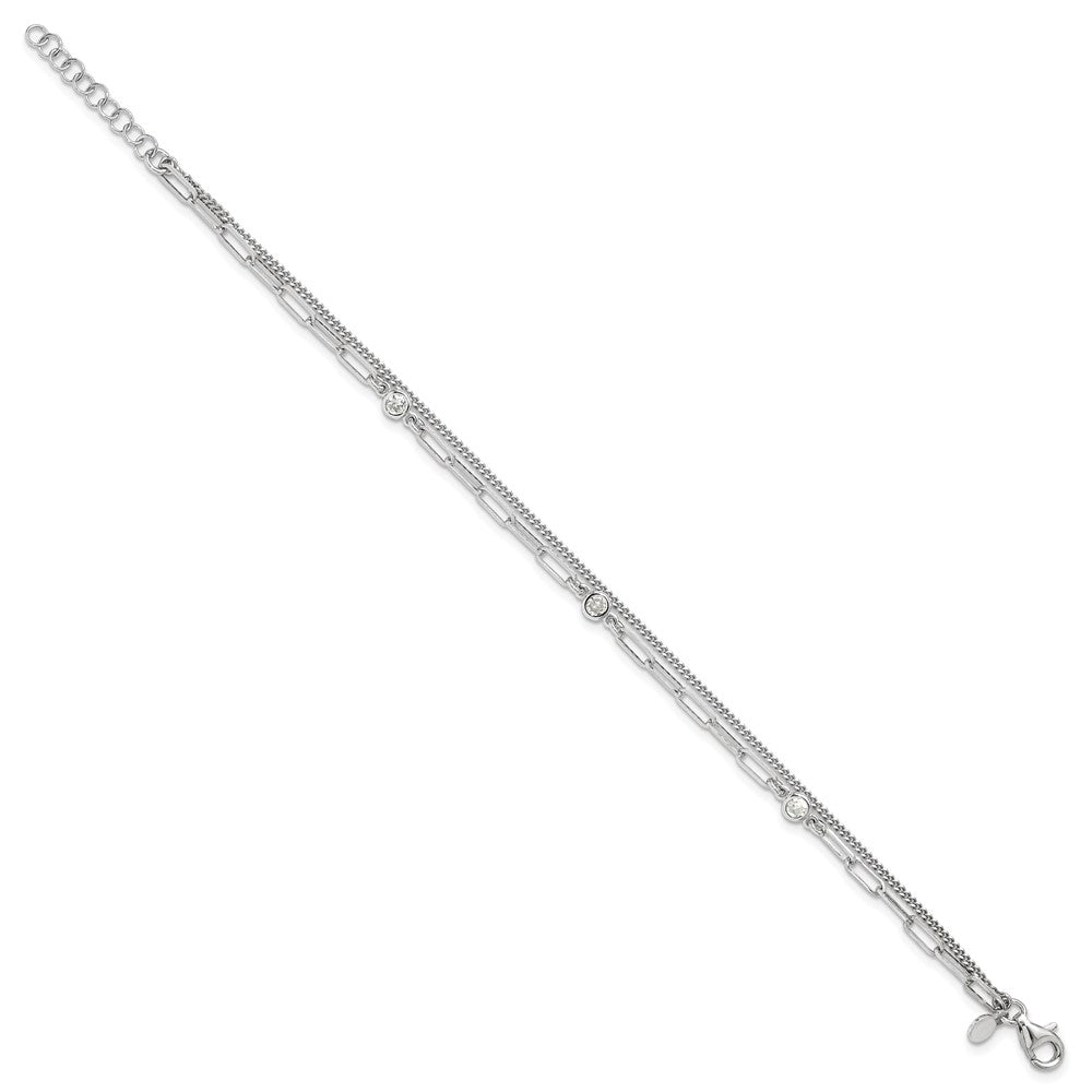 Sterling Silver Rhodium-plated CZ 2 Strand 6.75in w/1in ext. Bracelet