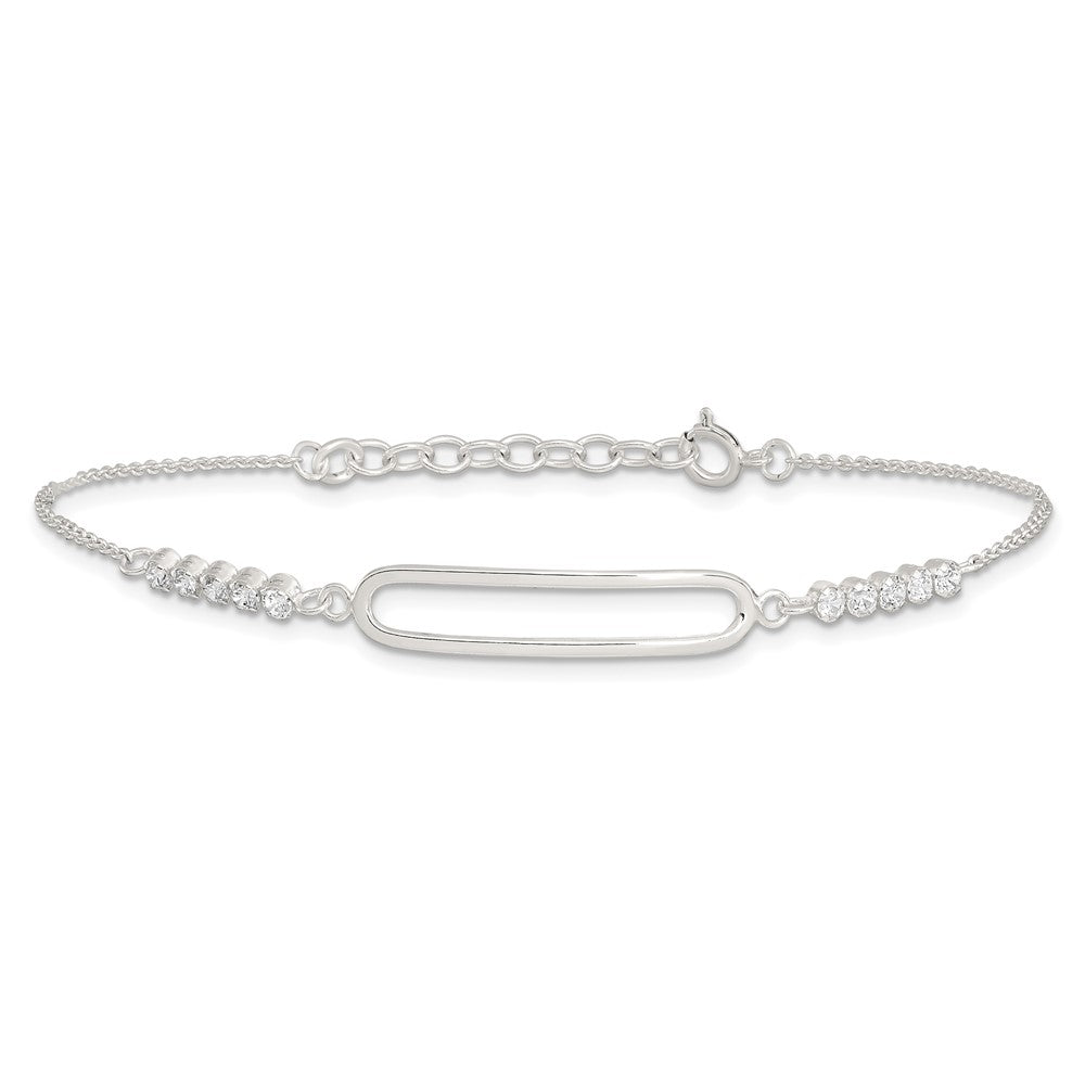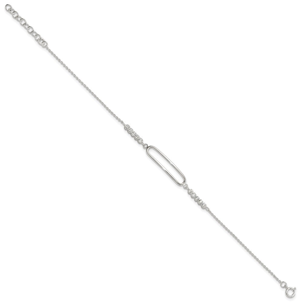Sterling Silver Rhodium-plated CZ 7in with .75in ext. Bracelet