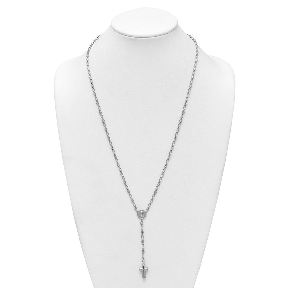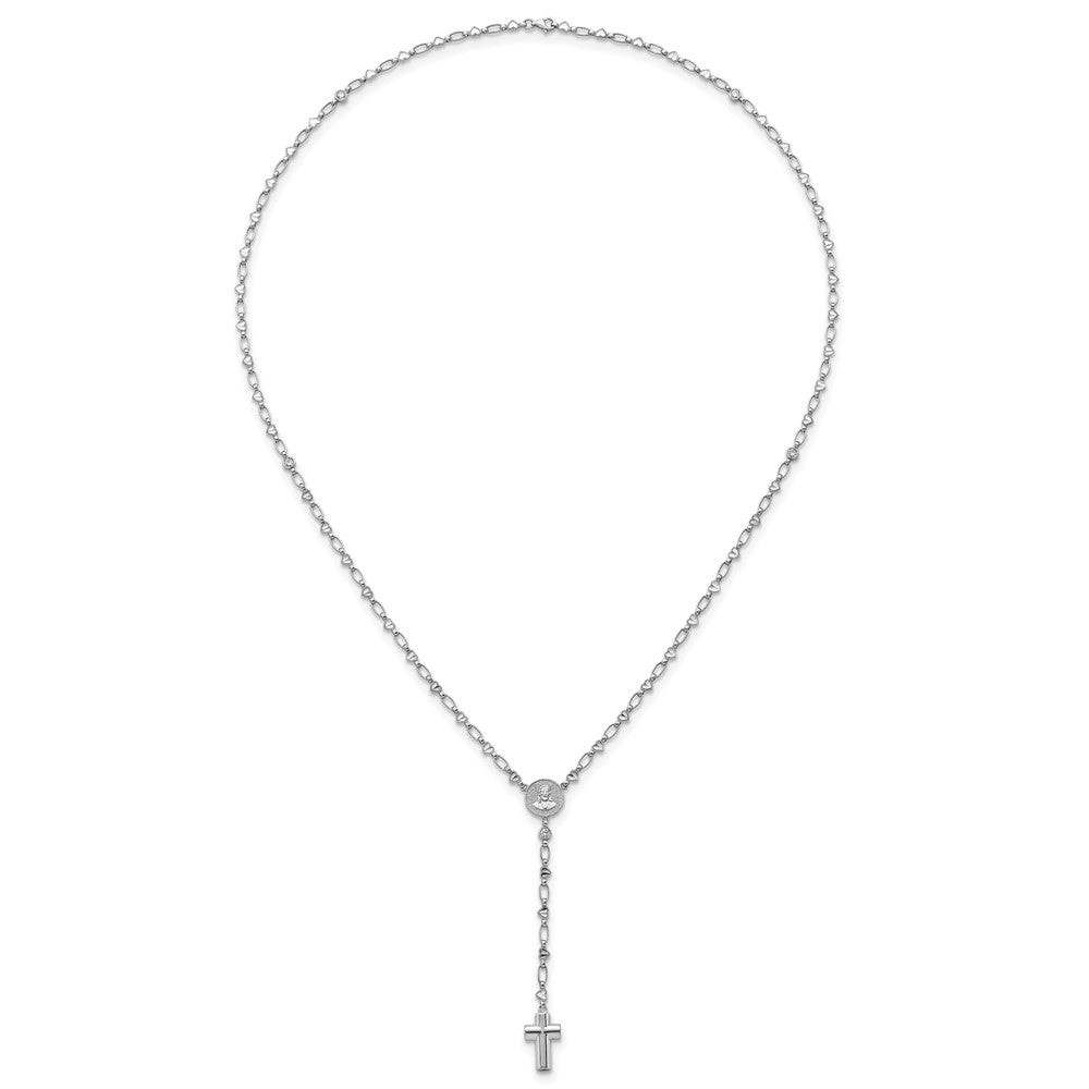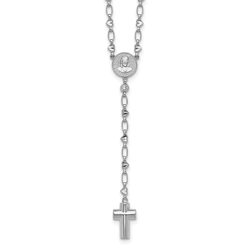 Sterling Silver Rhodium-plated CZ and Diamond-cut Heart Link with Cross Ash Holder 26. Rosary Necklace