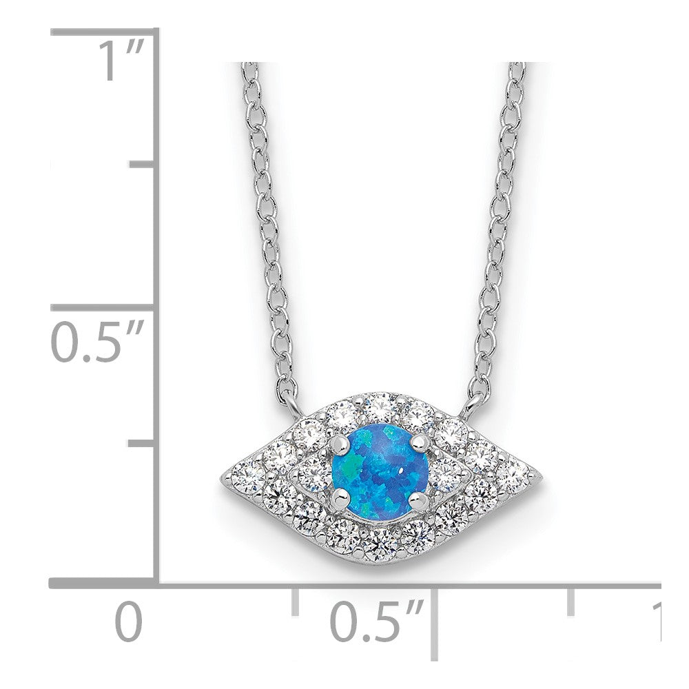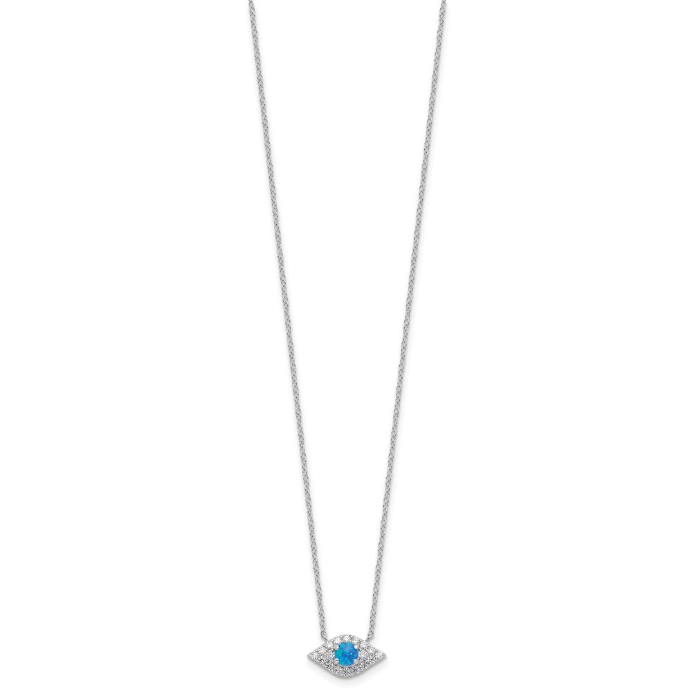 Sterling Silver Rhodium-plated CZ Blue Cr. Opal Evil Eye w/2in ext Necklace