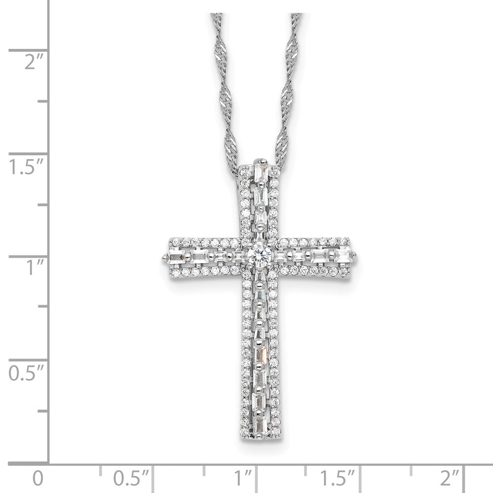 Sterling Silver Rhodium-plated CZ Cross 18in w/2in ext. Necklace