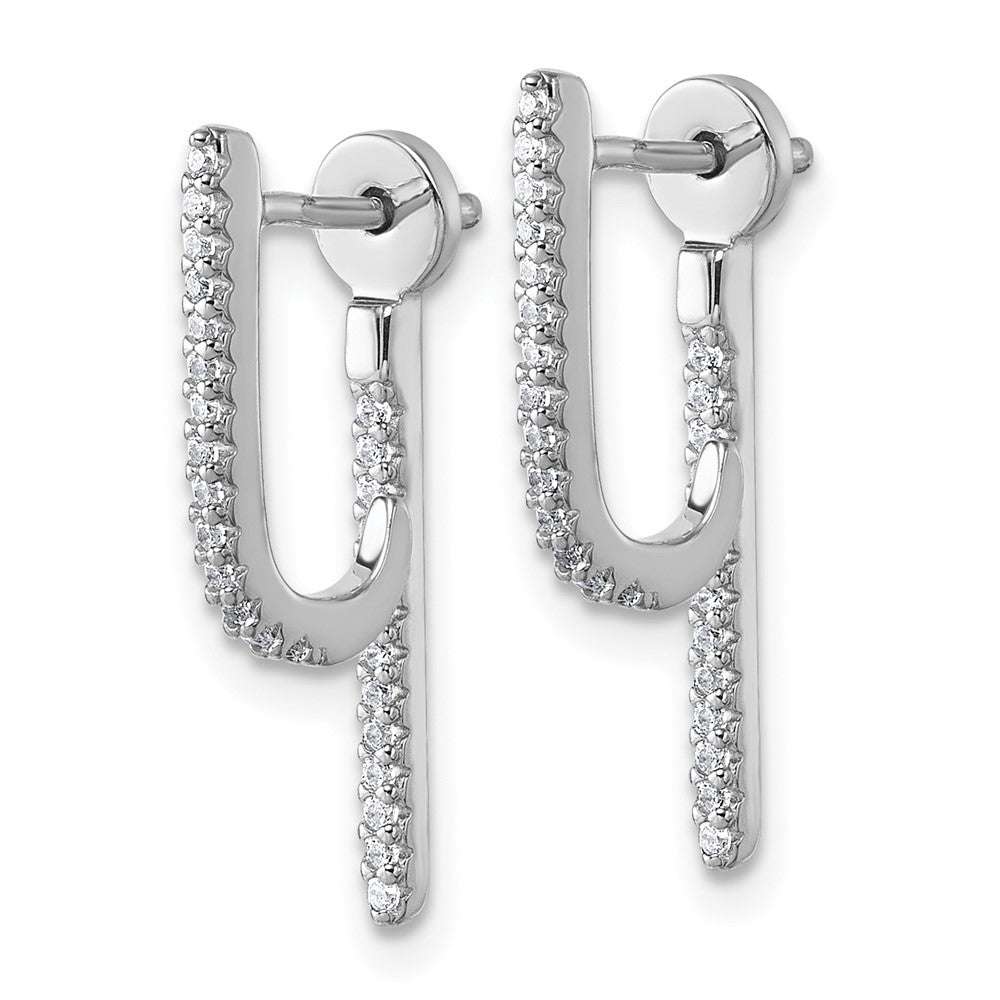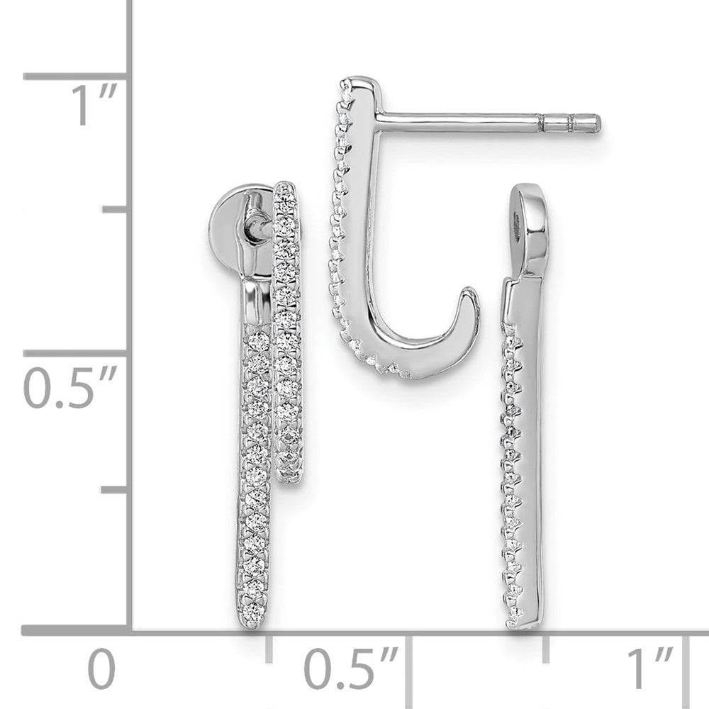 Sterling Silver Rhodium-plated CZ Front and Back Dangle J-Hoop Post Earrings