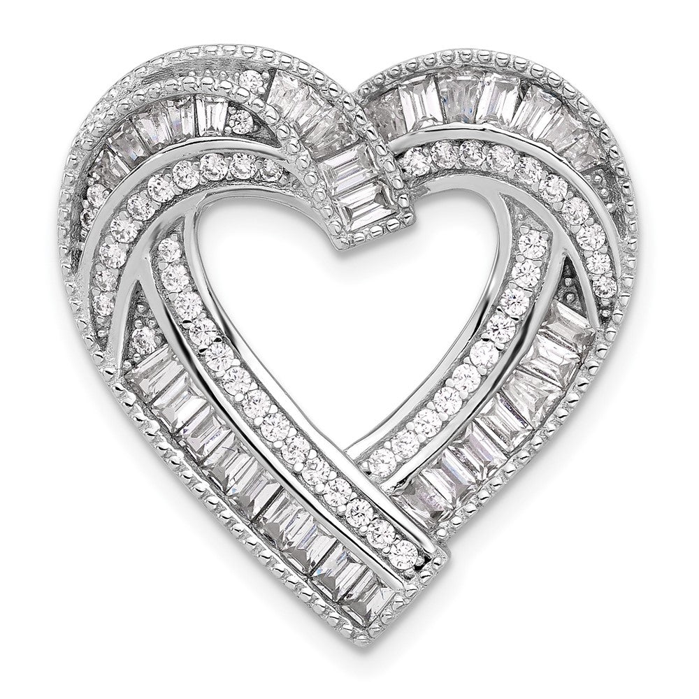 Sterling Silver Rhodium-plated CZ Heart Chain Slide Pendant