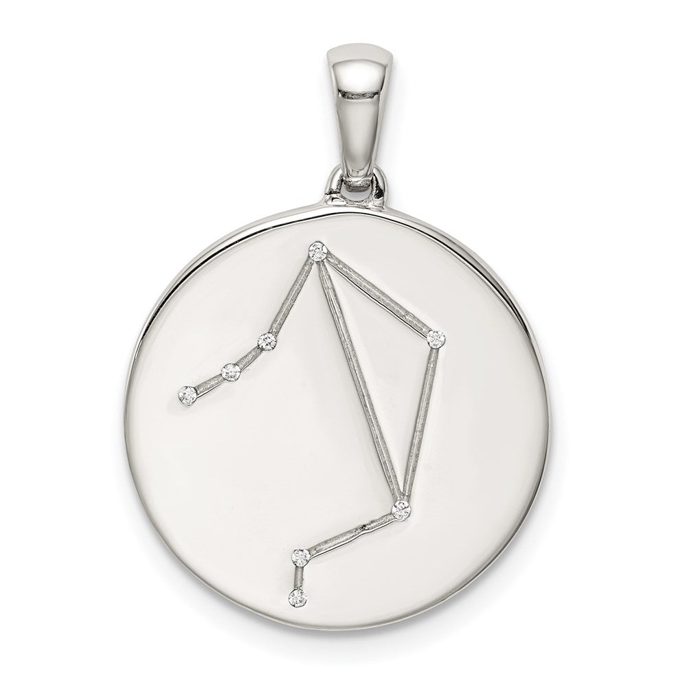 Sterling Silver Rhodium-plated & CZ Libra Zodiac Pendant