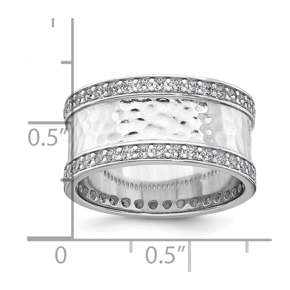 Sterling Silver Rhodium-plated CZ Polished And Hammered Band Size 7 Ring
