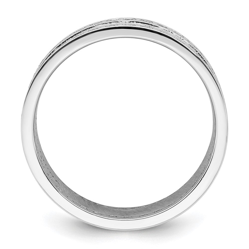 Sterling Silver Rhodium-plated CZ Polished And Hammered Band Size 8 Ring