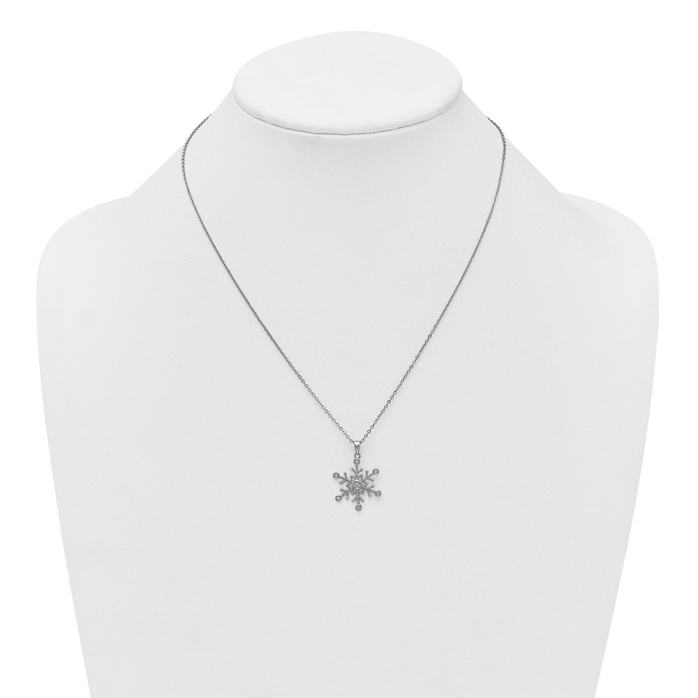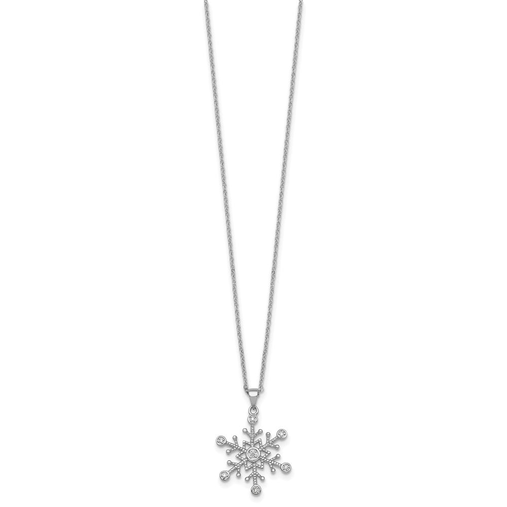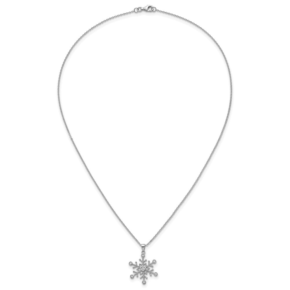Sterling Silver Rhodium-plated CZ Polished And Textured Snowflake Necklace
