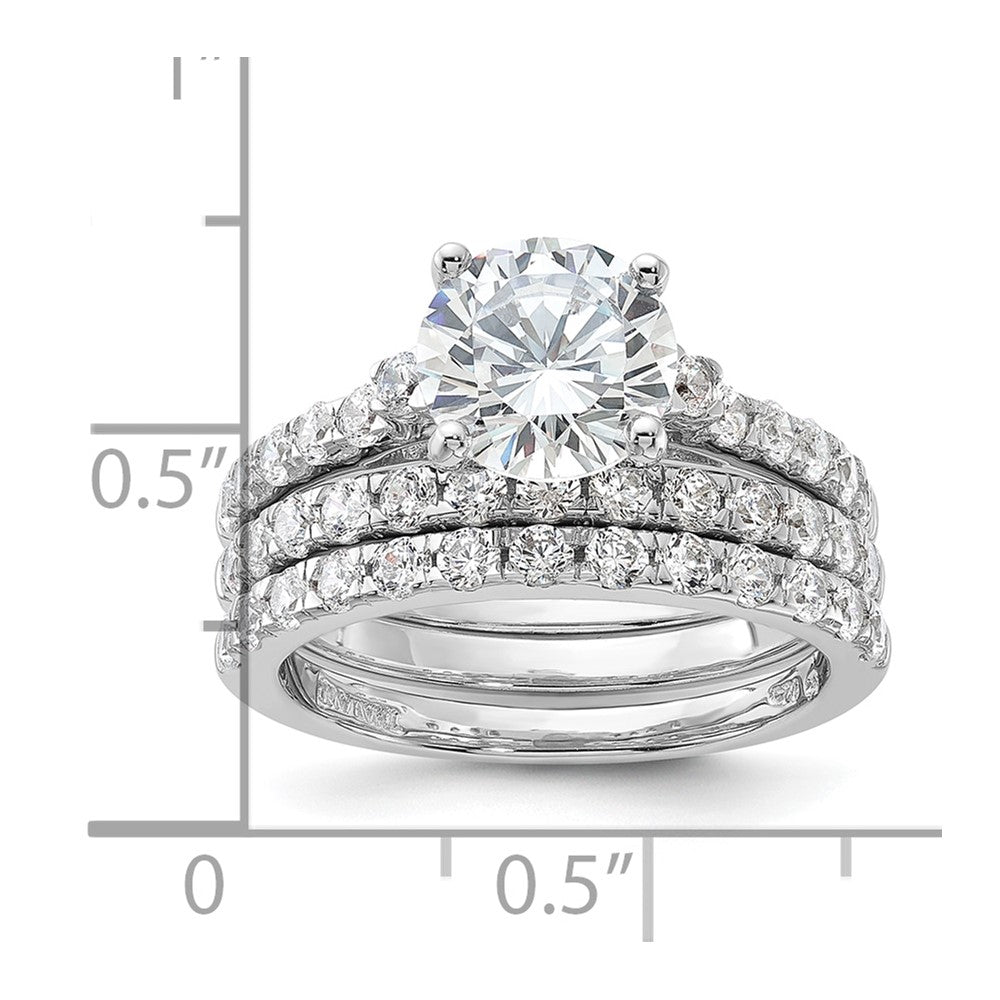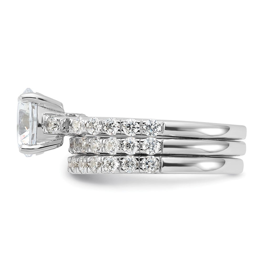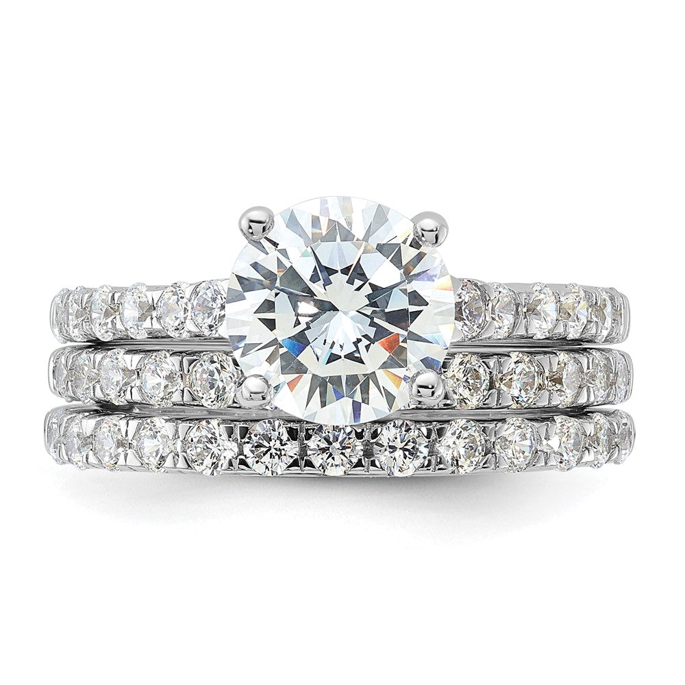 Sterling Silver Rhodium-plated CZ Ring & 2 CZ Band Set