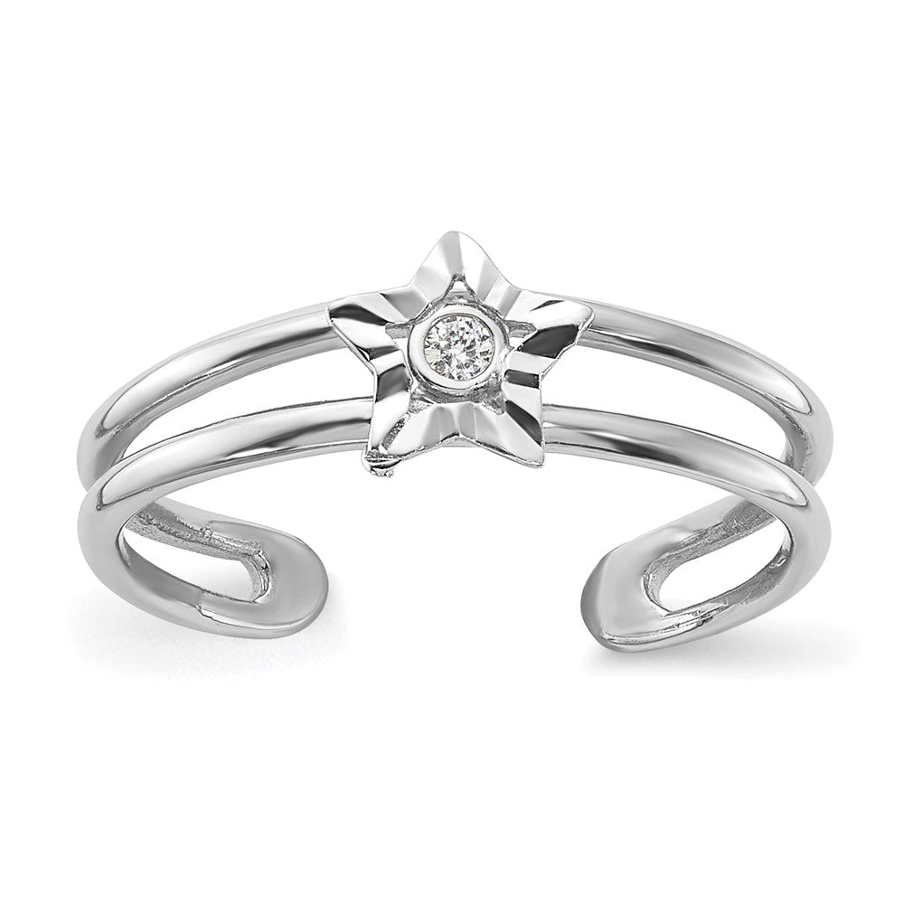 Sterling Silver Rhodium-plated CZ Star Toe Ring