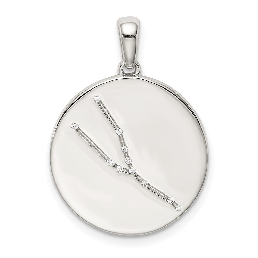Sterling Silver Rhodium-plated & CZ Taurus Zodiac Pendant