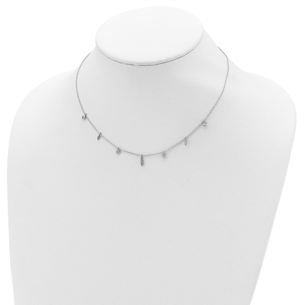 Sterling Silver Rhodium-plated CZ w/2in ext Necklace
