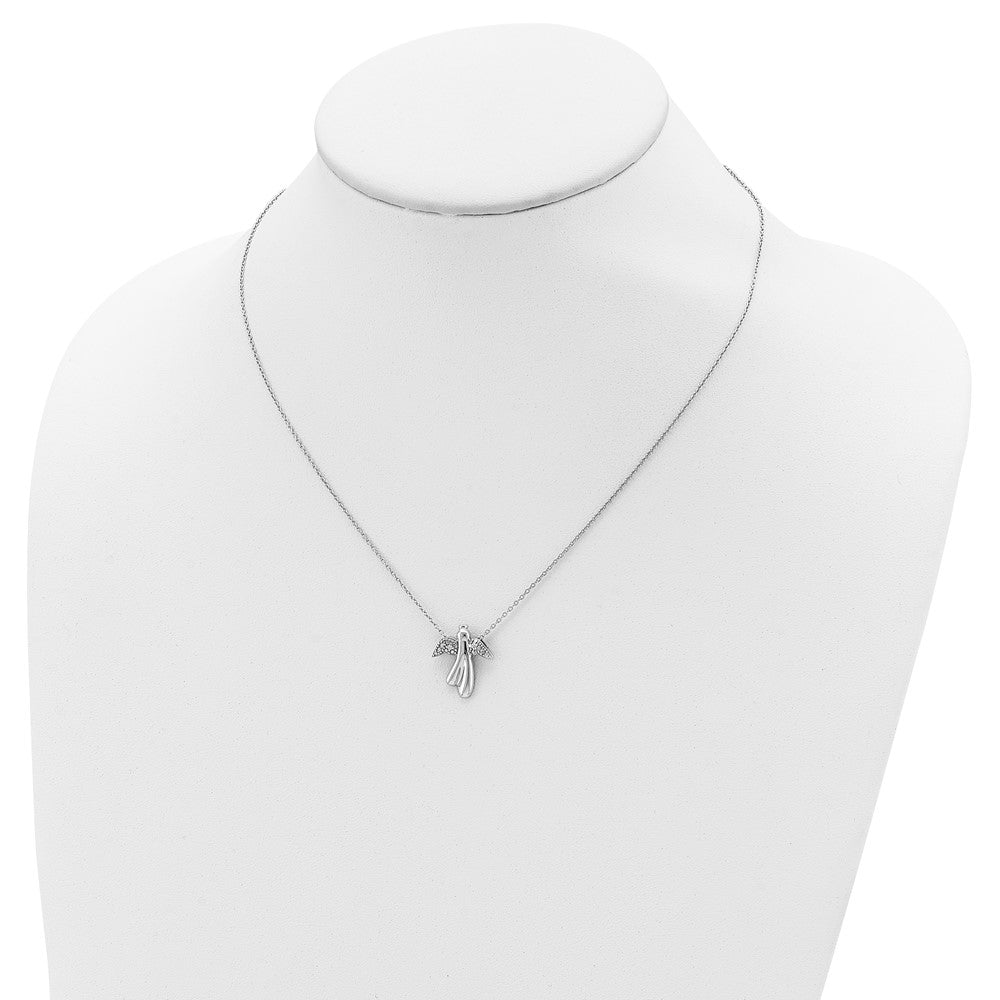 Sterling Silver Rhodium-plated Diamond Angel Necklace