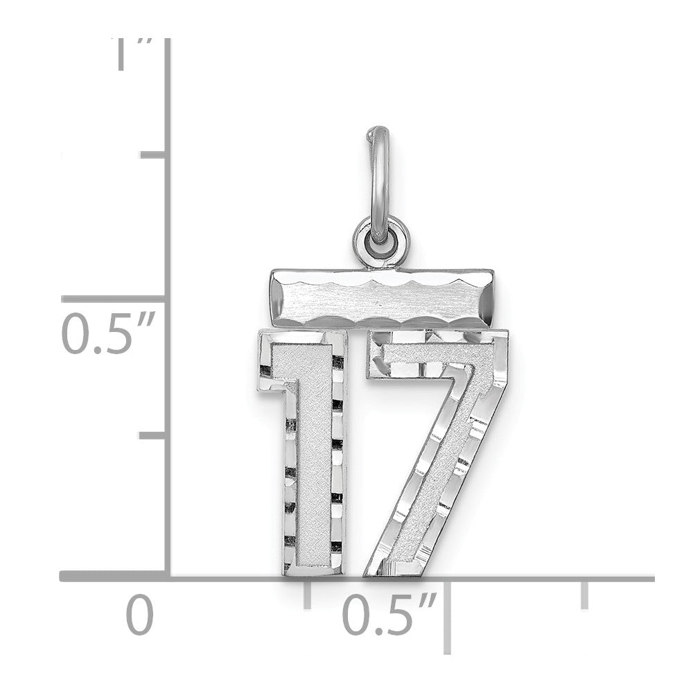 Sterling Silver Rhodium-plated Diamond-cut #17 Charm
