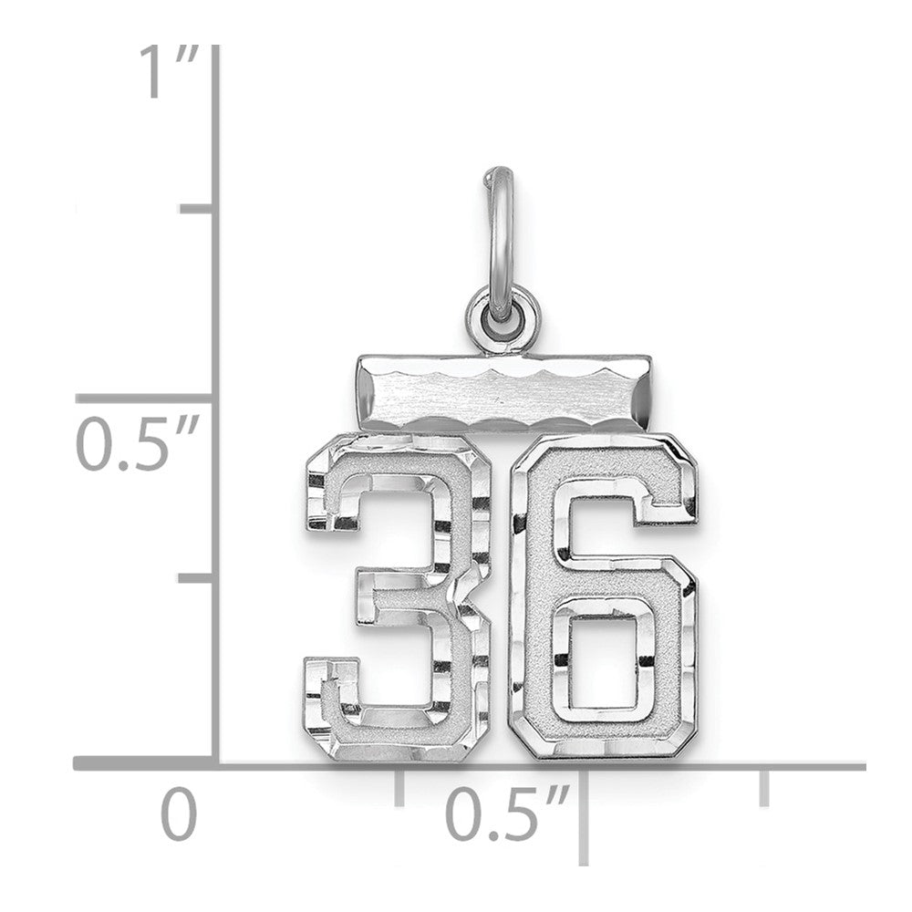 Sterling Silver Rhodium-plated Diamond-cut #36 Charm