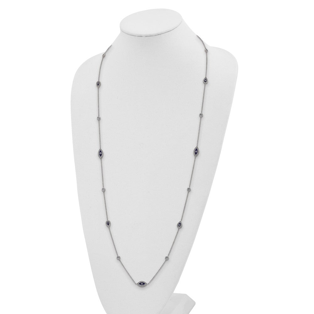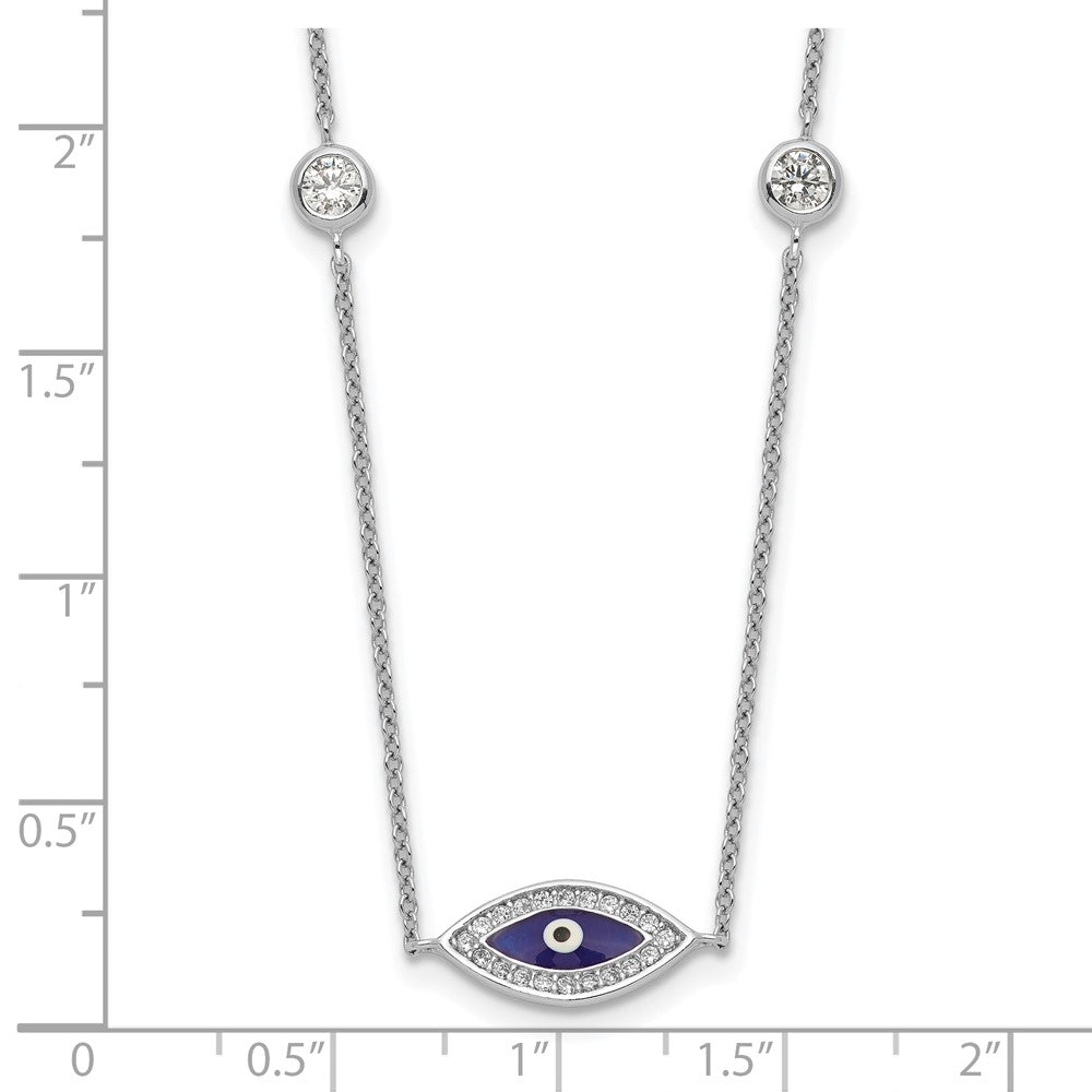 Sterling Silver Rhodium-plated Enameled CZ Evil Eye Necklace