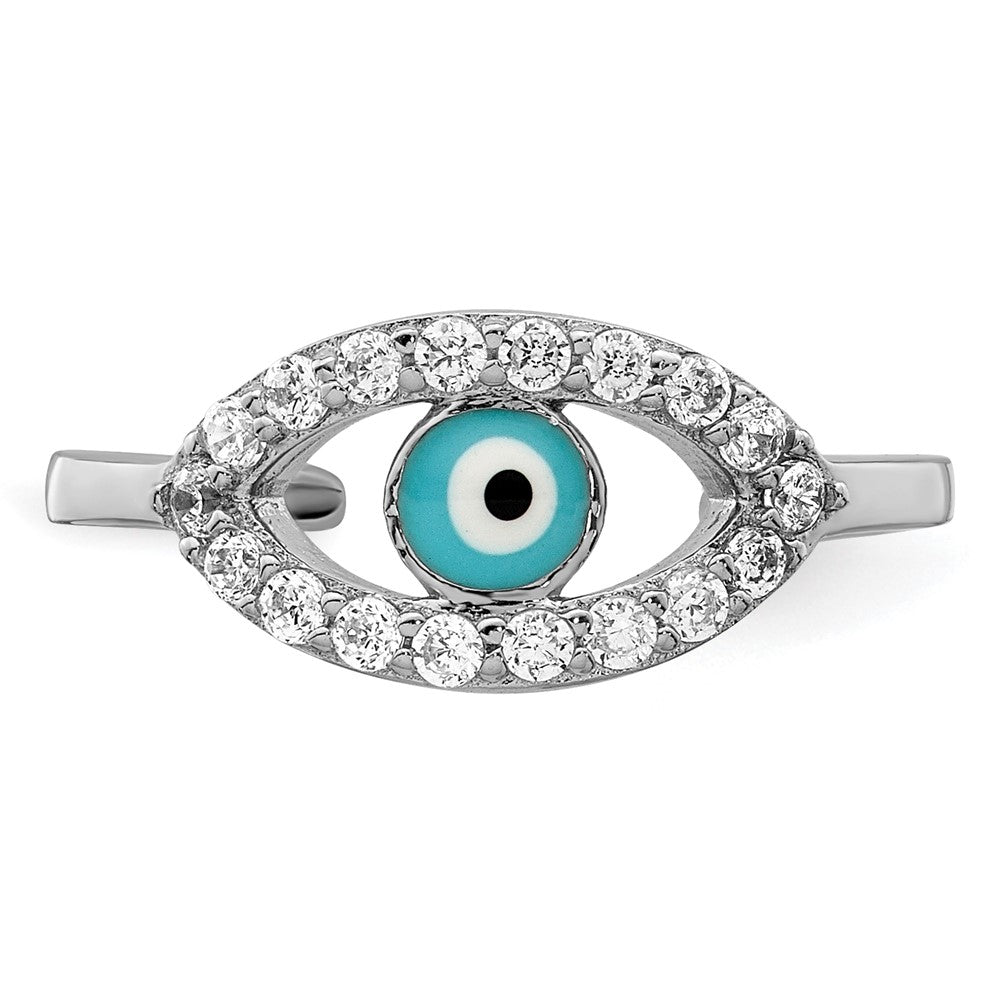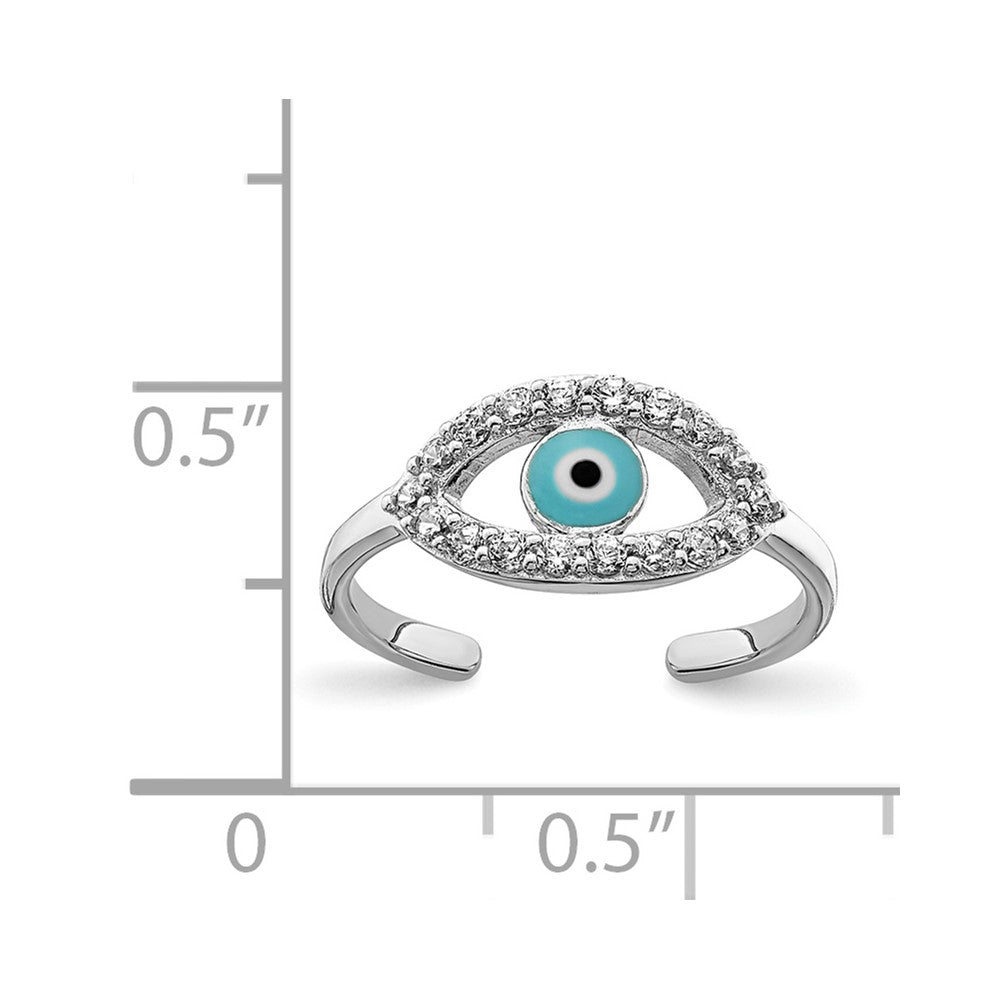 Sterling Silver Rhodium-plated Enameled & CZ Eye Toe Ring